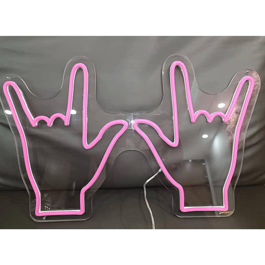 Fun Bright Pink Rock n’ Roll Hands LED Night Light Room Wall Decor