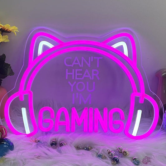 Fun Bright Pink “I Can’t Hear You I’m Gaming” Cat Ear Headphones LED Light Decor