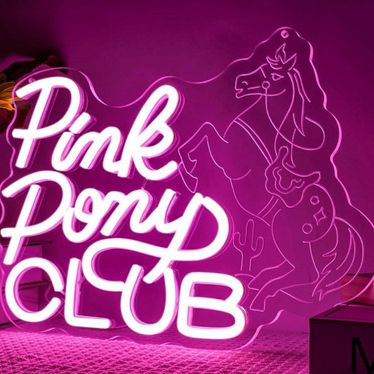 Fun Bright Pink “Pink Pony Club” LED Night Light Room Wall Decoration