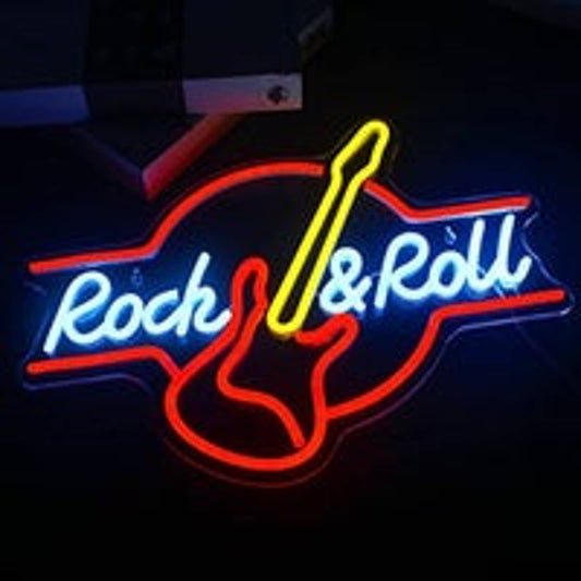 Fun Bright Red / Yellow Rock & Roll Guitar LED Night Light Music Room Wall Decor