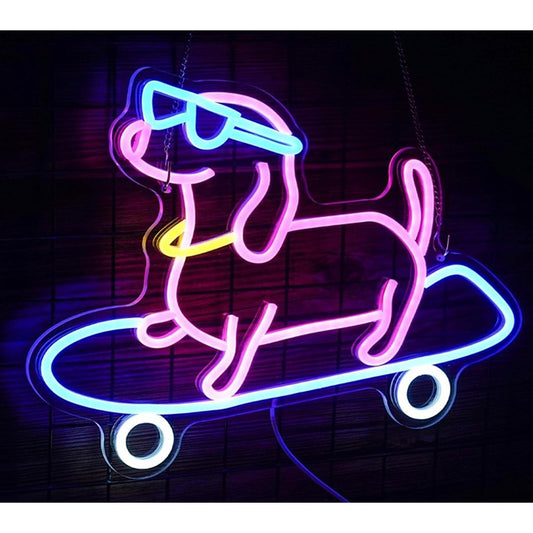 Fun Bright Weiner Dog Riding Skateboard LED Night Light Room Wall Decor