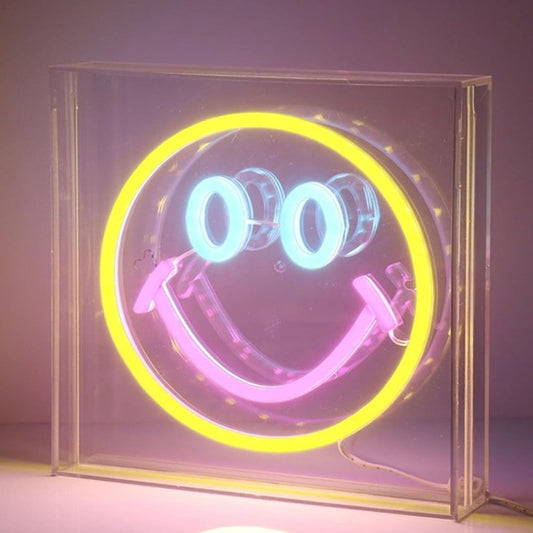 Fun Bright Yellow / Pink Smiley Face LED Night Light Box Room Wall Decor