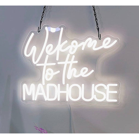 Fun Bright White “Welcome to the Madhouse” LED Night Light Room Wall Decoration