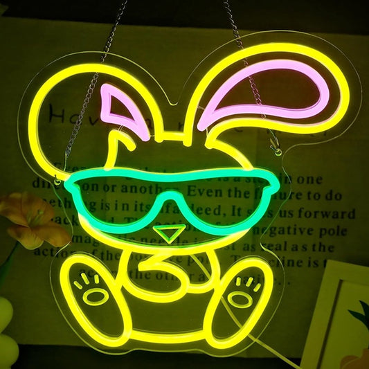 Fun Bright Yellow Bunny Rabbit Kid with Sunglasses Night Light Room Wall Decor
