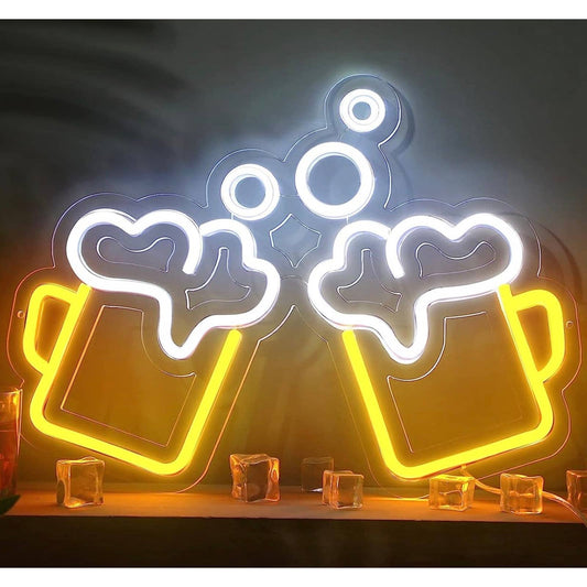 Fun Bright Yellow Clinking Beers LED Night Light Room Wall Party Decoration