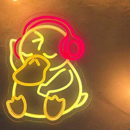 Fun Bright Yellow Duck Listening to Music LED Night Light Ducky Decor
