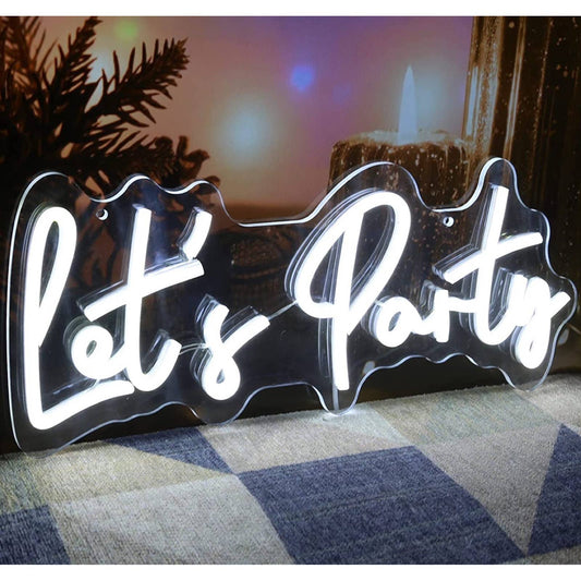 Fun Cool Bright White “Let’s Party” LED Night Light Room Wall Celebration Decora