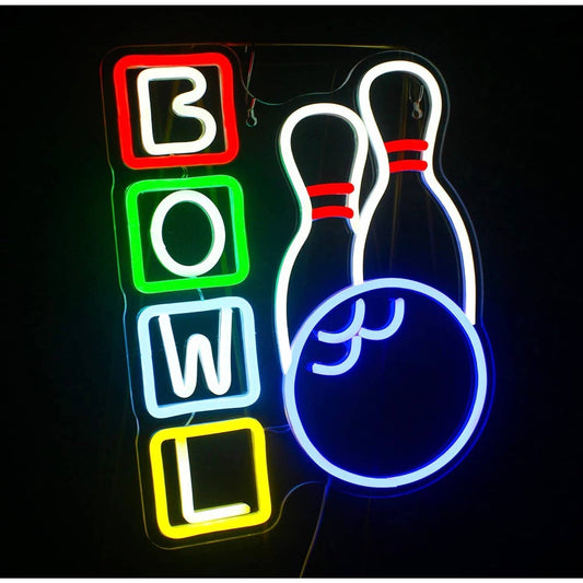 Fun Colorful Bright Bowling Ball and Pins LED Night Light Game Room Wall Decorat