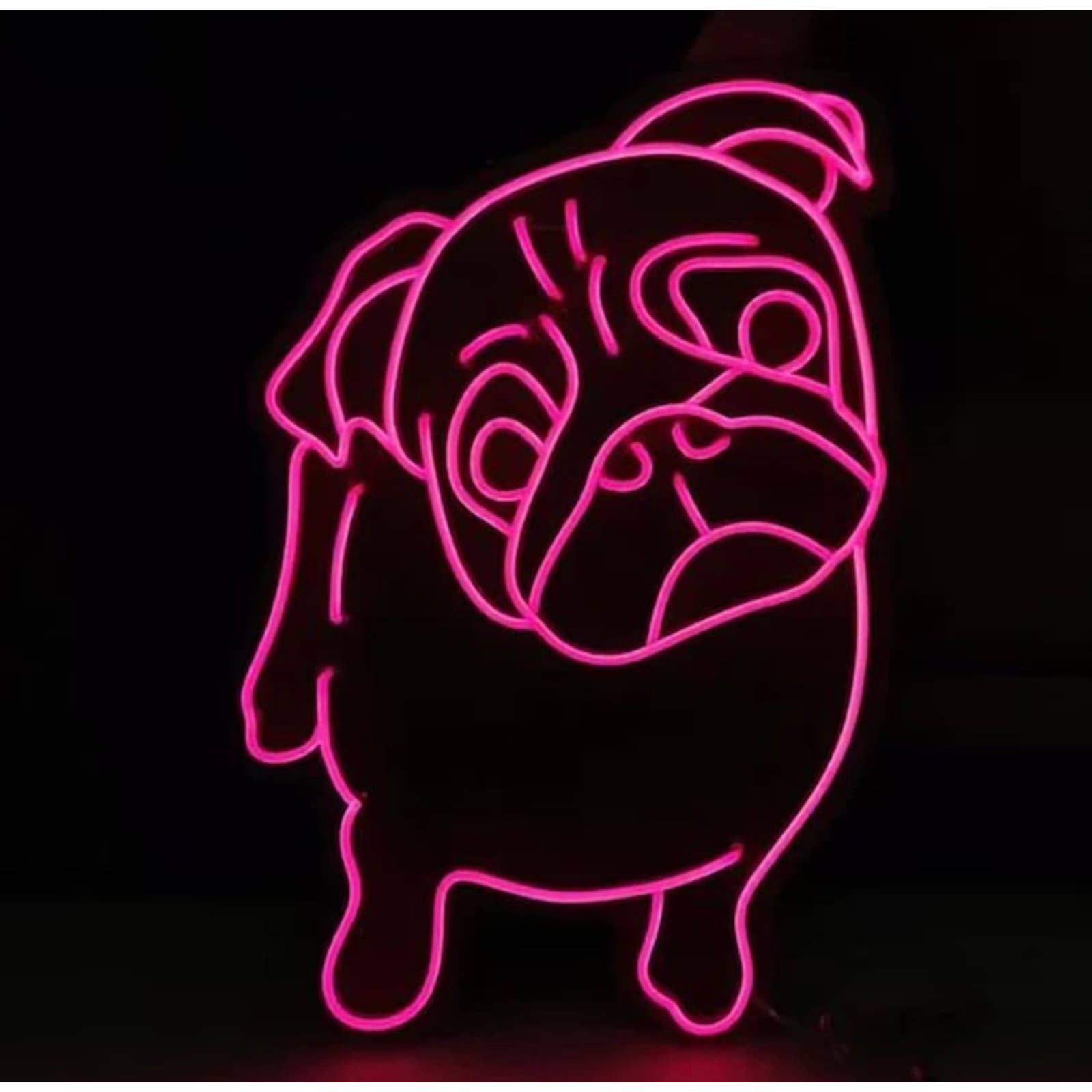 Adorable Bright Pink Pug Puppy Dog LED Night Light Room Wall Decor
