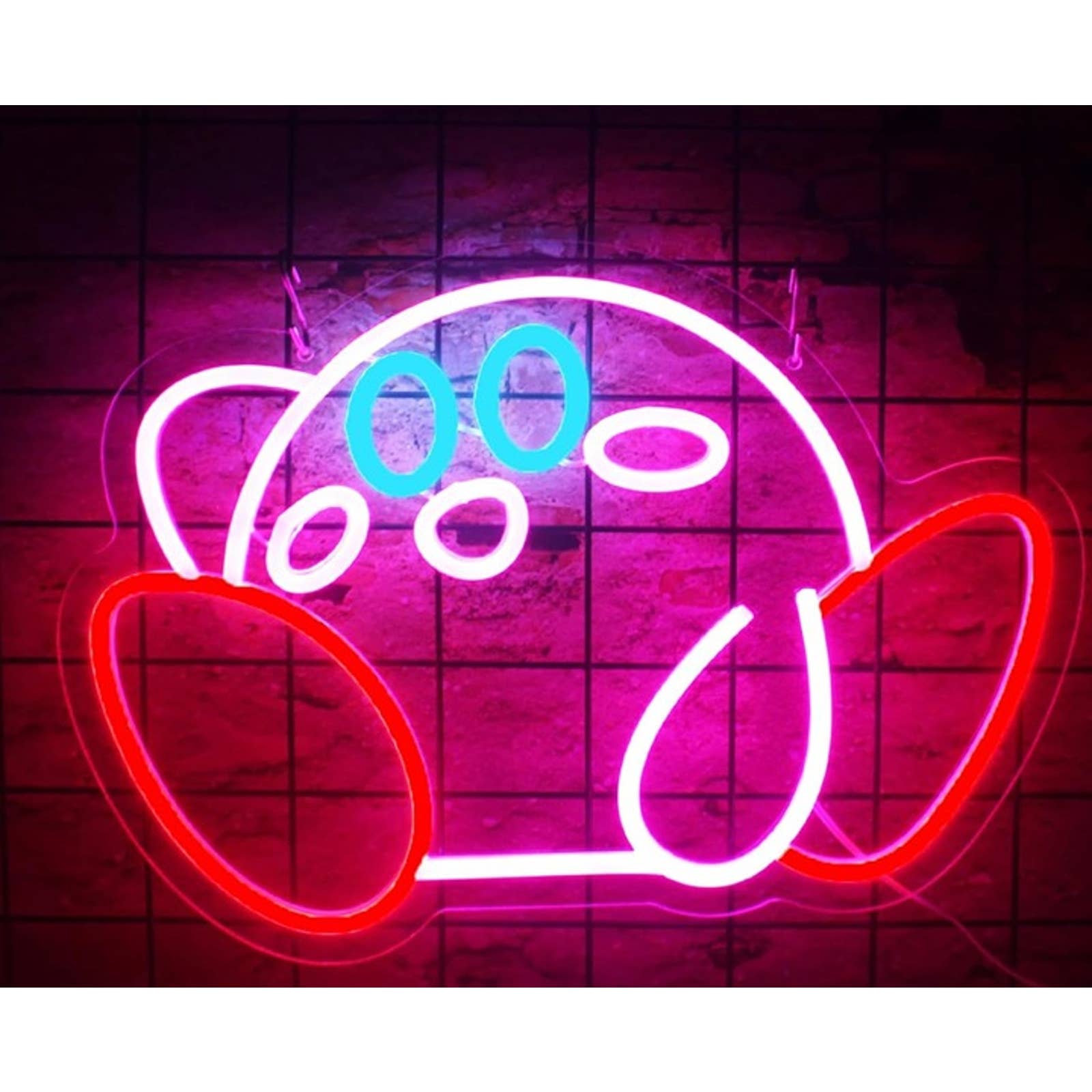 Adorable Bright Pink Sitting Kirby LED Night Light Video Game Room Wall Decor