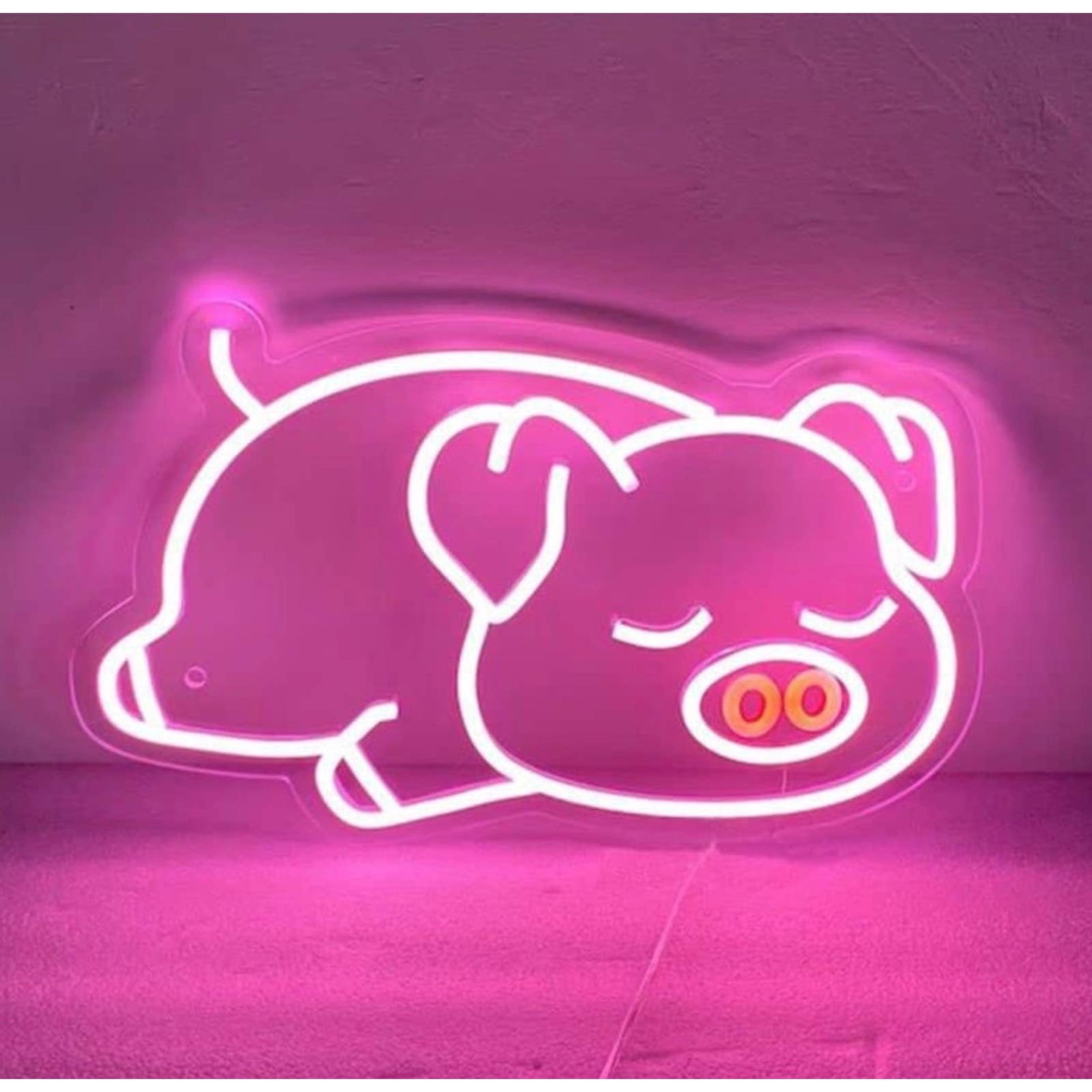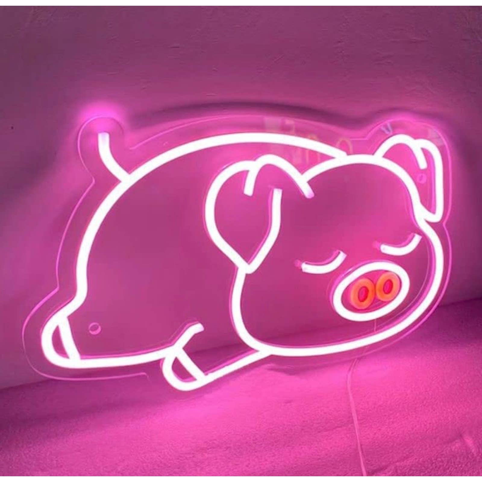 Adorable Bright Pink Sleeping Pig LED Night Light Barn Yard Room Wall Decoration