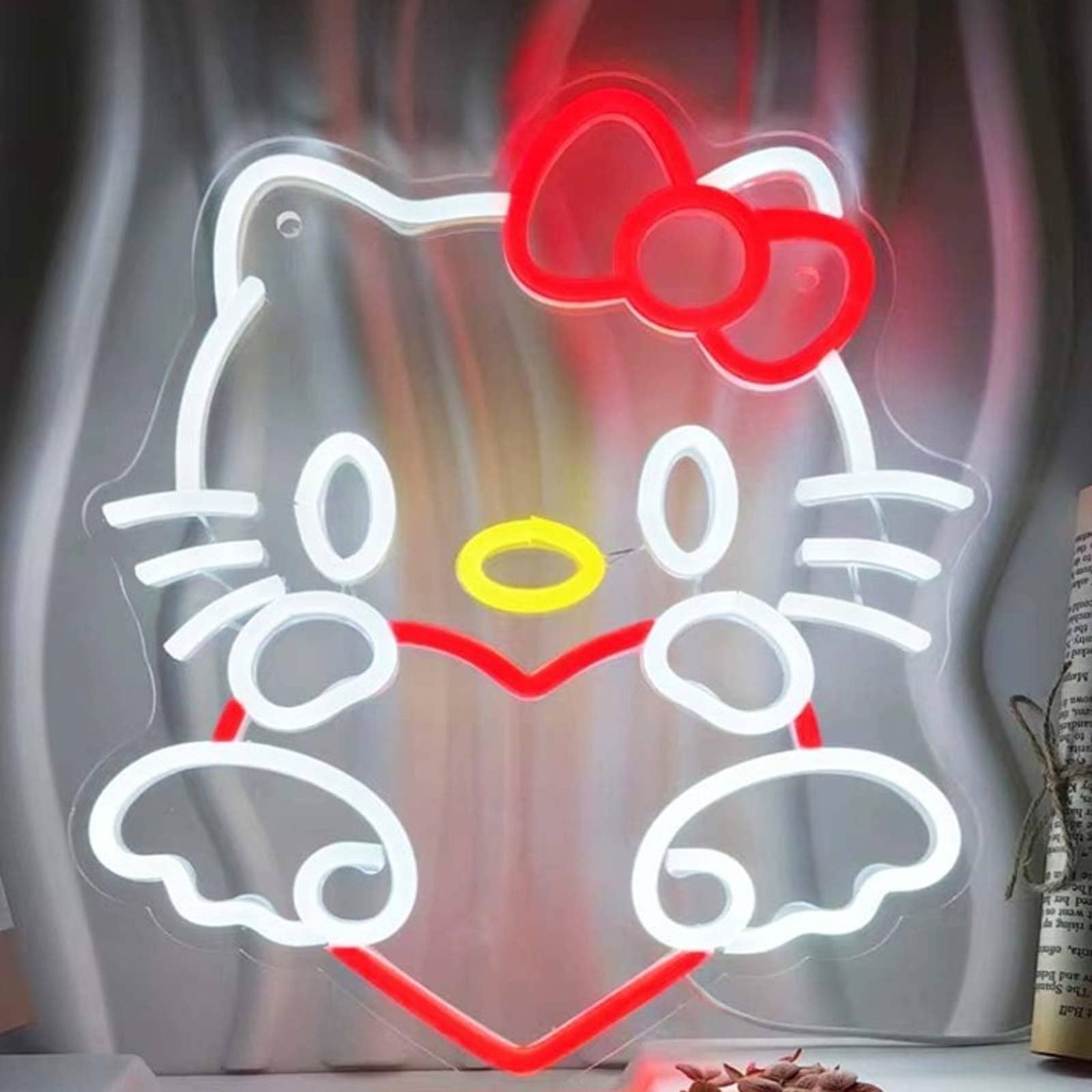 Elevate decor with touch of anime magic. Red Angel Wing Heart Hello Kitty LED Light is more than lighting – reminder of comfort in favorite character.