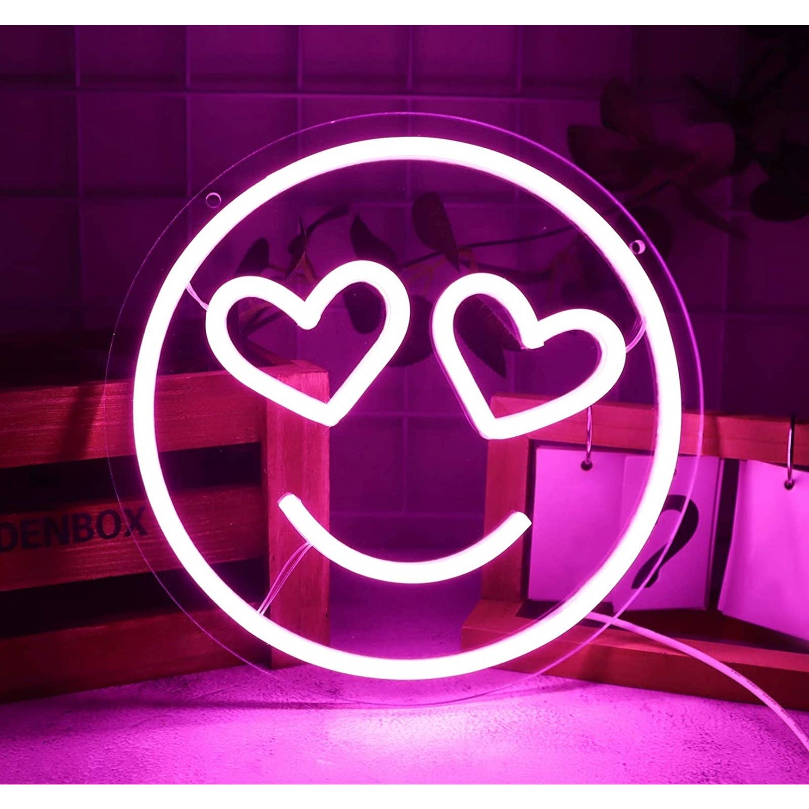SPECIAL DESIGN: Smiley neon sign, its eyes are heart-shaped. Nursery, Teen, and Kids' Bedroom Decor, which is exquisite and wall art aesthetic. When you flip the switch, it emits a bright and soft glow, and the pink smiley face quickly replaces the boring dark room, adding warmth and good vibes, energizing your mood and making you happy