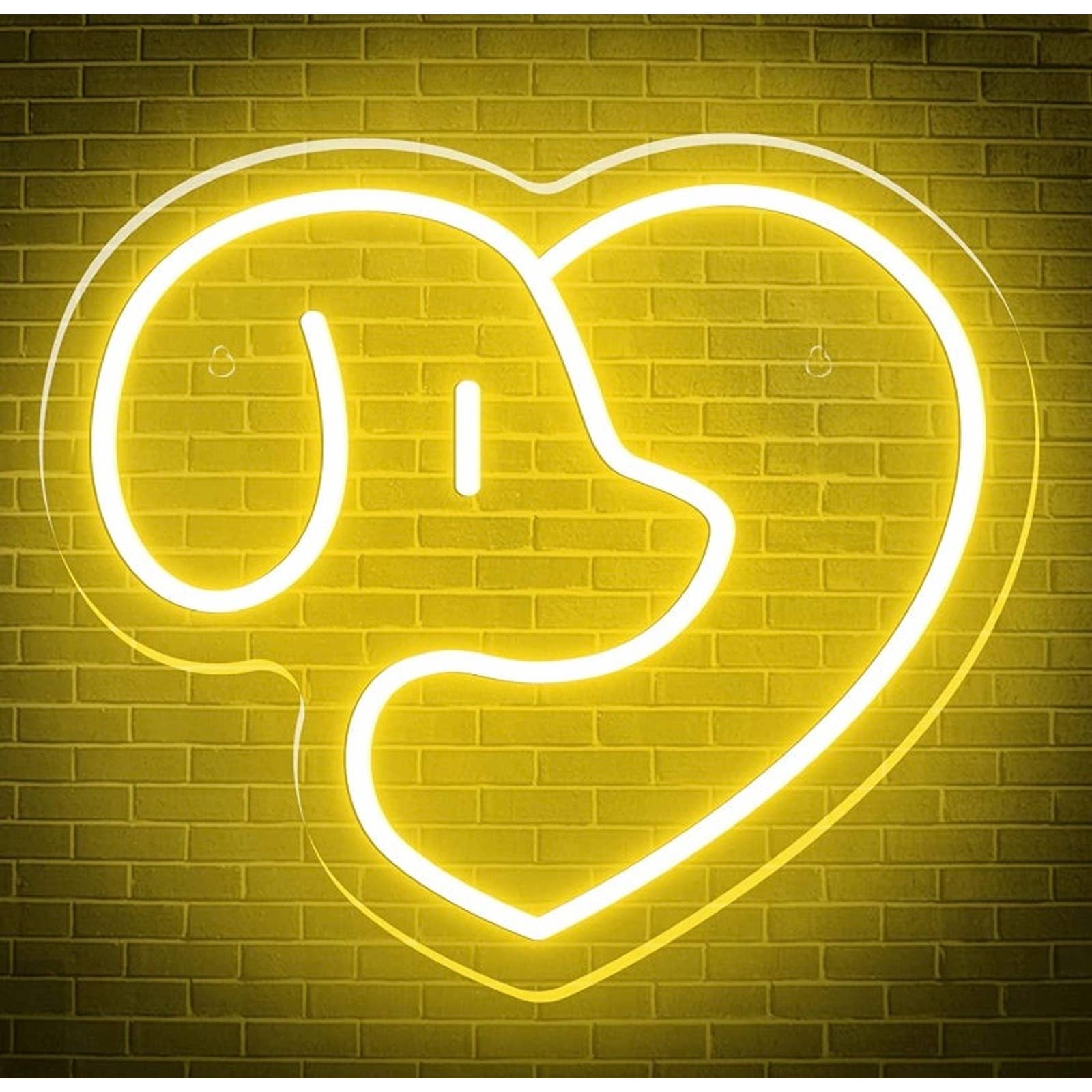 Adorable Bright Yellow Puppy Dog Love Heart LED Night Light Room Wall Decoration