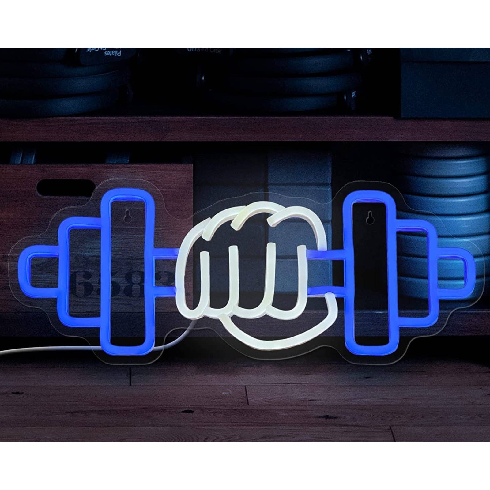 Light Up Your Home Gym! - Unique design with one hand tightly holding the dumbbell, neon light is perfect gym wall decor for sport lovers’ living room, bedroom or fitness wall, which is also a cool stuff for bar, club and party.