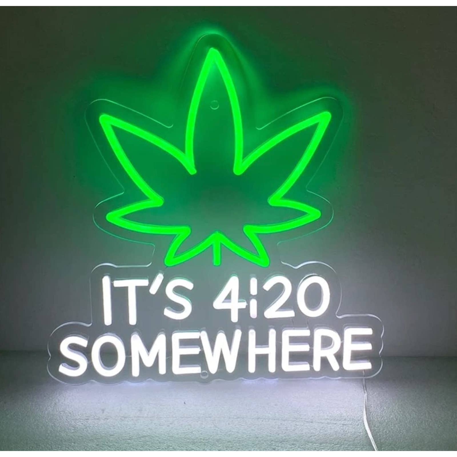 Bright Green Plant “It’s 4:20 Somewhere” LED Night Light Room Wall Decoration