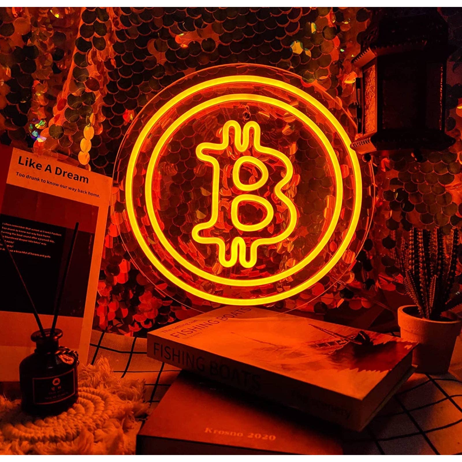 Bright Orange Bitcoin Crypto LED Night Light Currency Sign Decoration