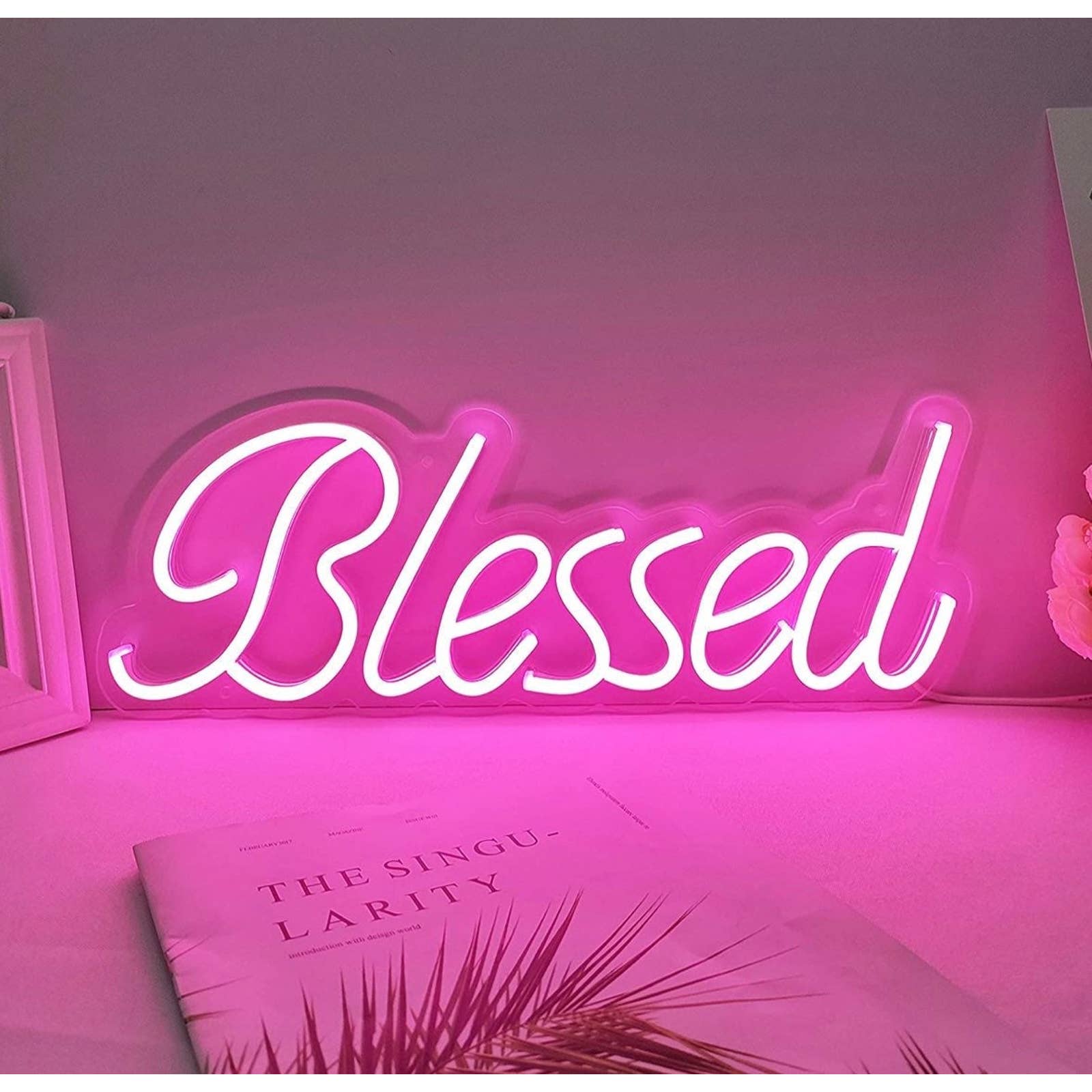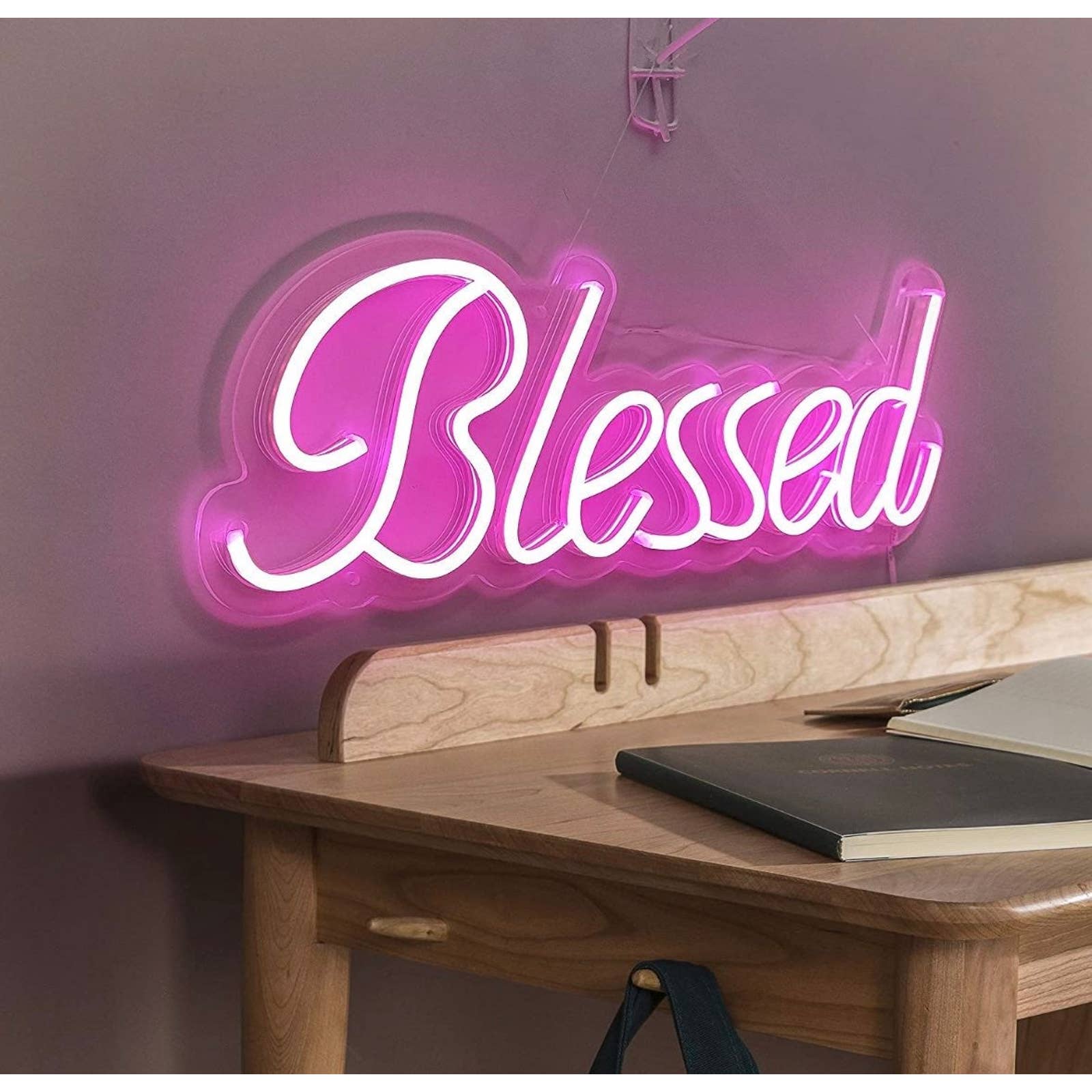 Brightness Adjustment - The Blessed neon sign has a dimming switch, which can be easily turned on or off by clicking the switch. Long press the switch to adjust the brightness at will. When you sleep at night, you can adjust this personalized neon light to the minimum brightness as a night atmosphere light.