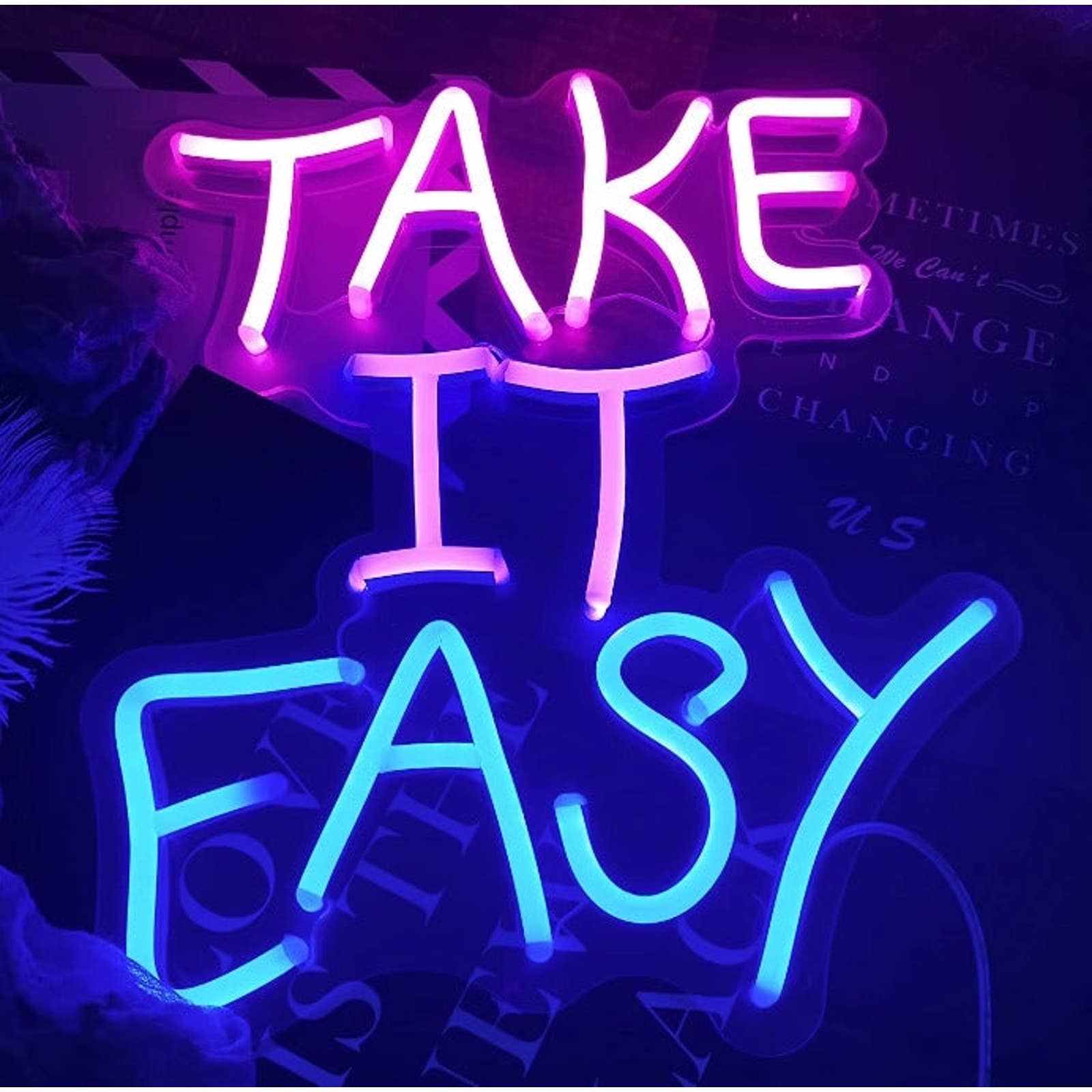 Bright Pink & Blue “Take It Easy” LED Light Sign Room Decoration