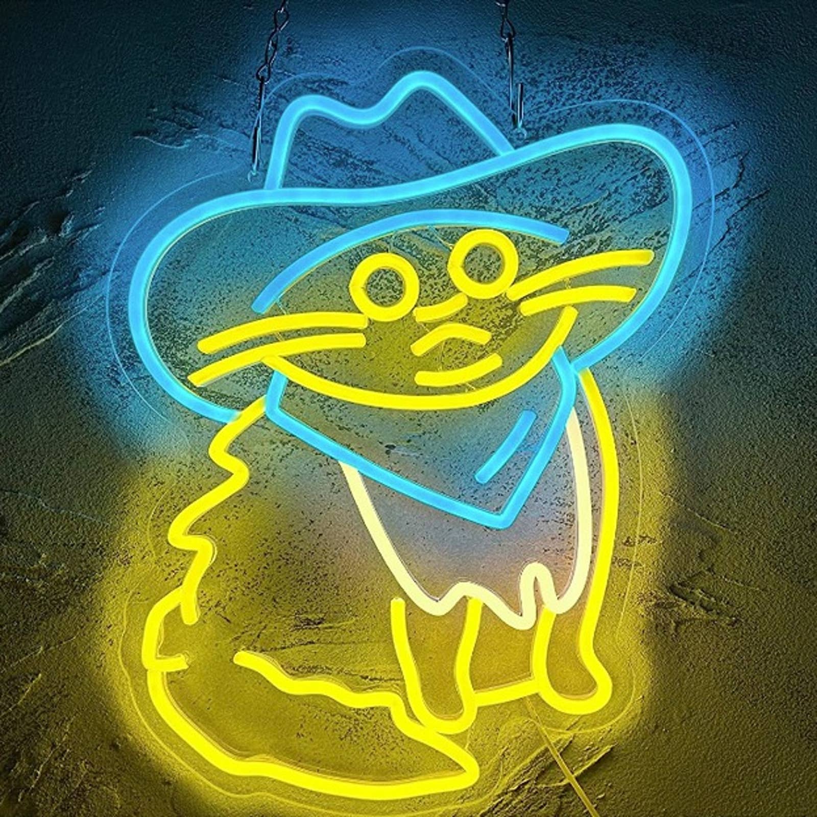 Add a touch of retro & stylish charm to your room w/ this Cowboy Hat Cat neon sign. Featuring a bright & vibrant design, this unique cat cowboy neon sign is perfect for cat lovers & makes for a great decoration or gift. It's ideal for dorm rooms, game rooms, bedrooms, or as a wall night light in stores.