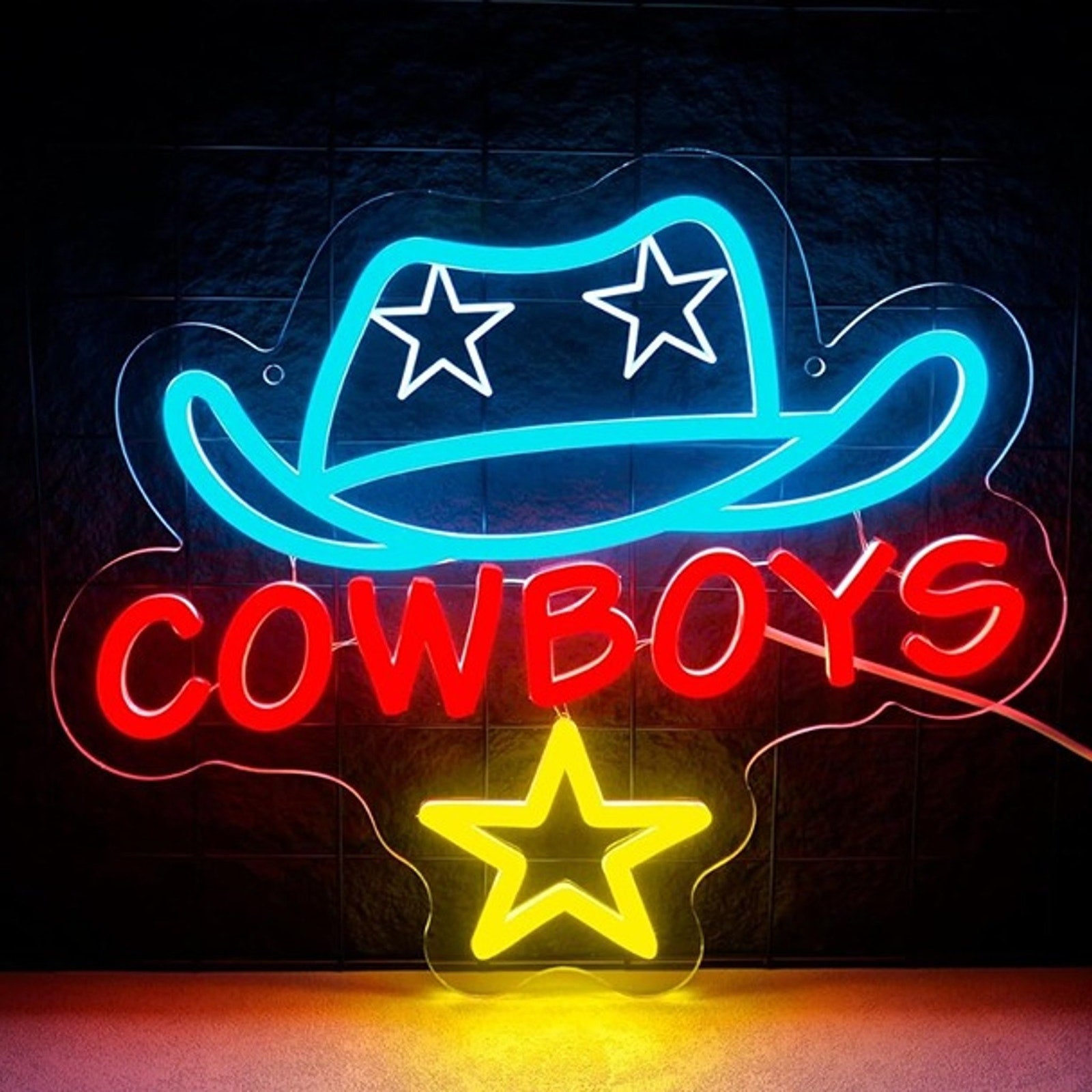 Add a Western twist to any space with this fun and bright blue cowboy hat LED night light! Featuring a bold double-star design, this glowing hat brings a playful country vibe to bedrooms, game rooms, or any cowboy-inspired setup. Perfect for rodeo fans, country music lovers, or anyone who wants to lasso in some extra style!
