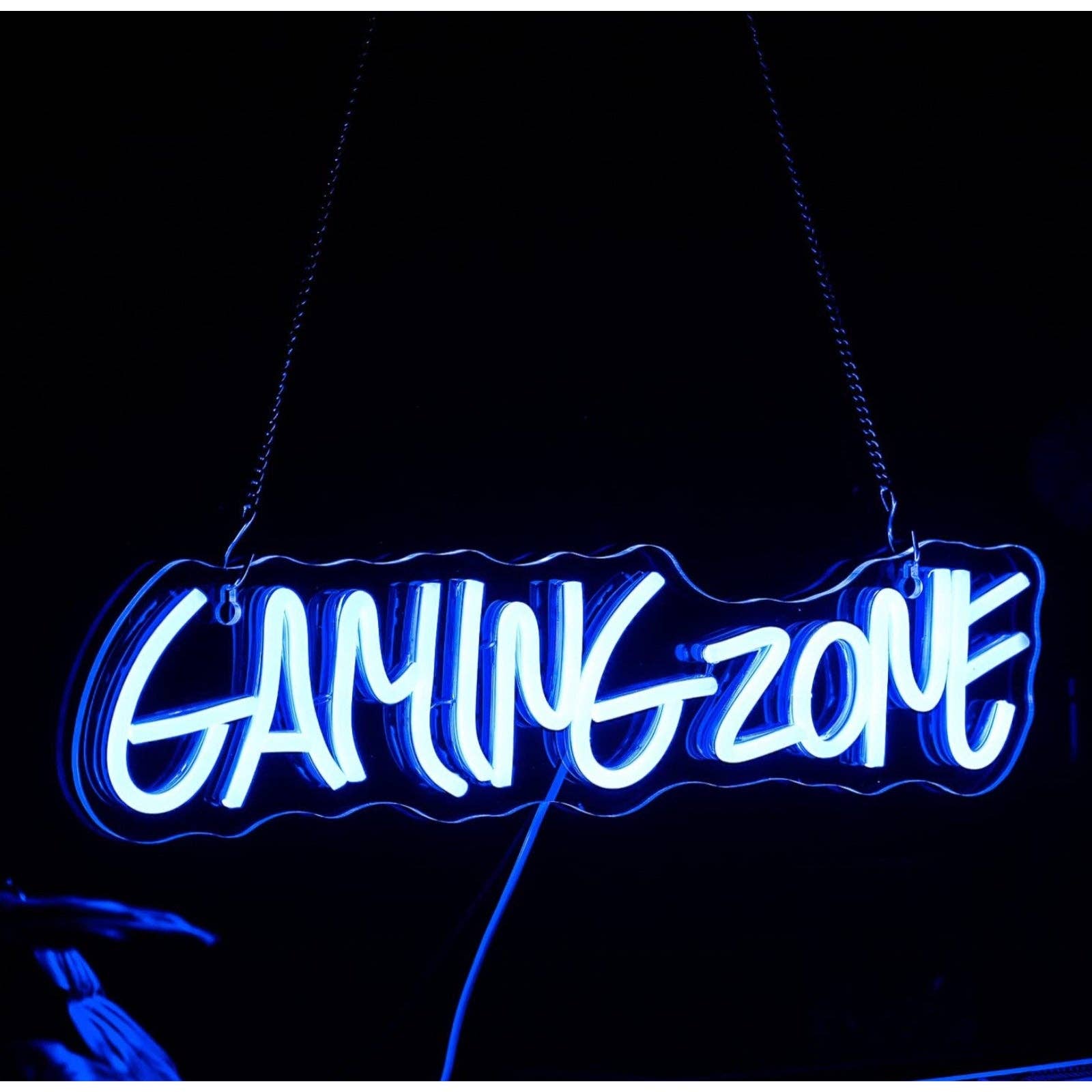 Safe material: Game zone neon sign is made of acrylic backplate PVC. The voltage is 5V, and the brightness can be adjusted. The LED tube will not heat up and can be touched by hand, Blue neon signs for wall decor use USB power supply (can be lit by adapter, power bank or computer)