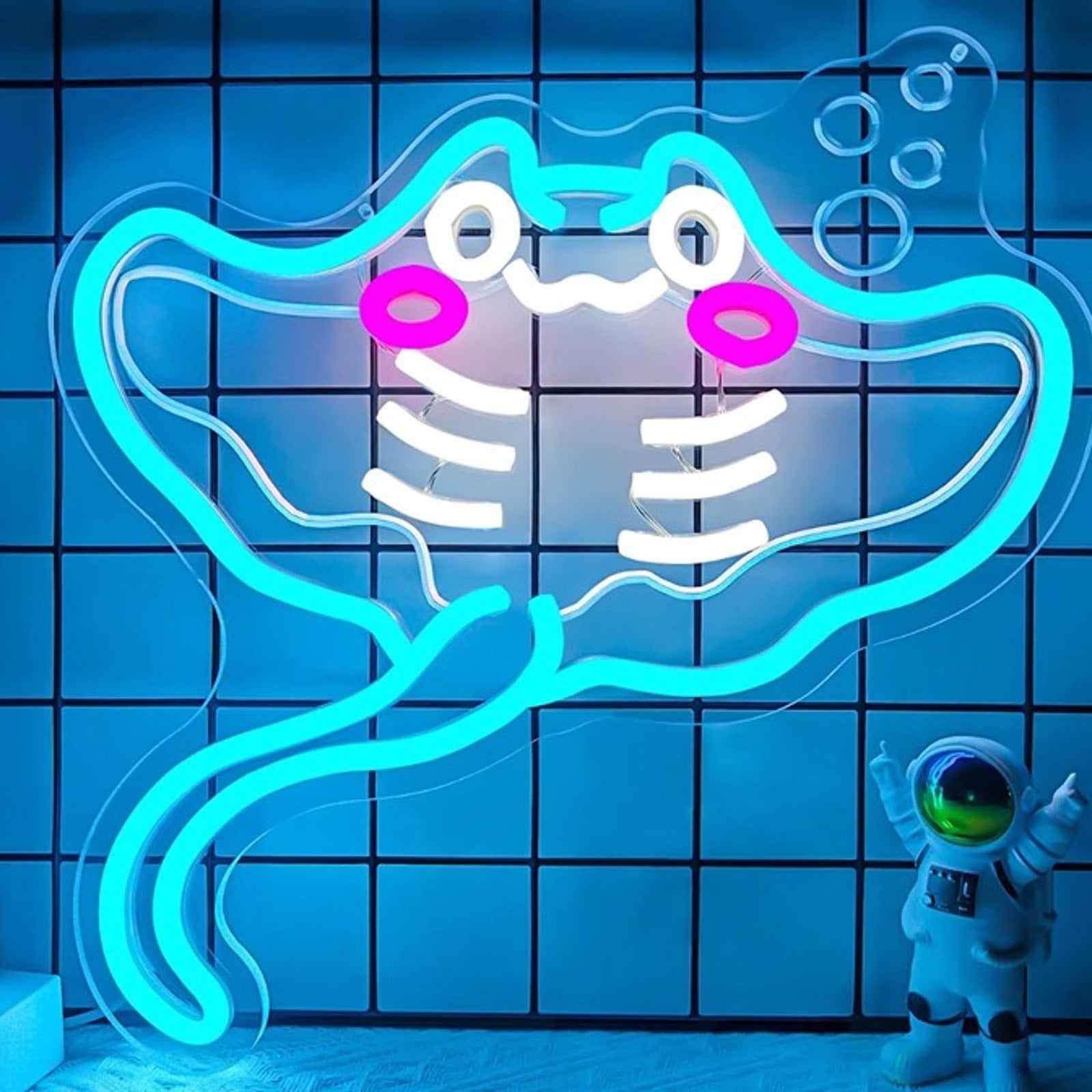Add a splash of ocean magic with this adorable happy baby stingray LED light! Featuring a bright blue glow and a cheerful design, this charming night light is perfect for bedrooms, nurseries, or any space that needs a little underwater whimsy. Its lightweight and energy-efficient design makes it easy to display while creating a cozy, calming atmosphere.