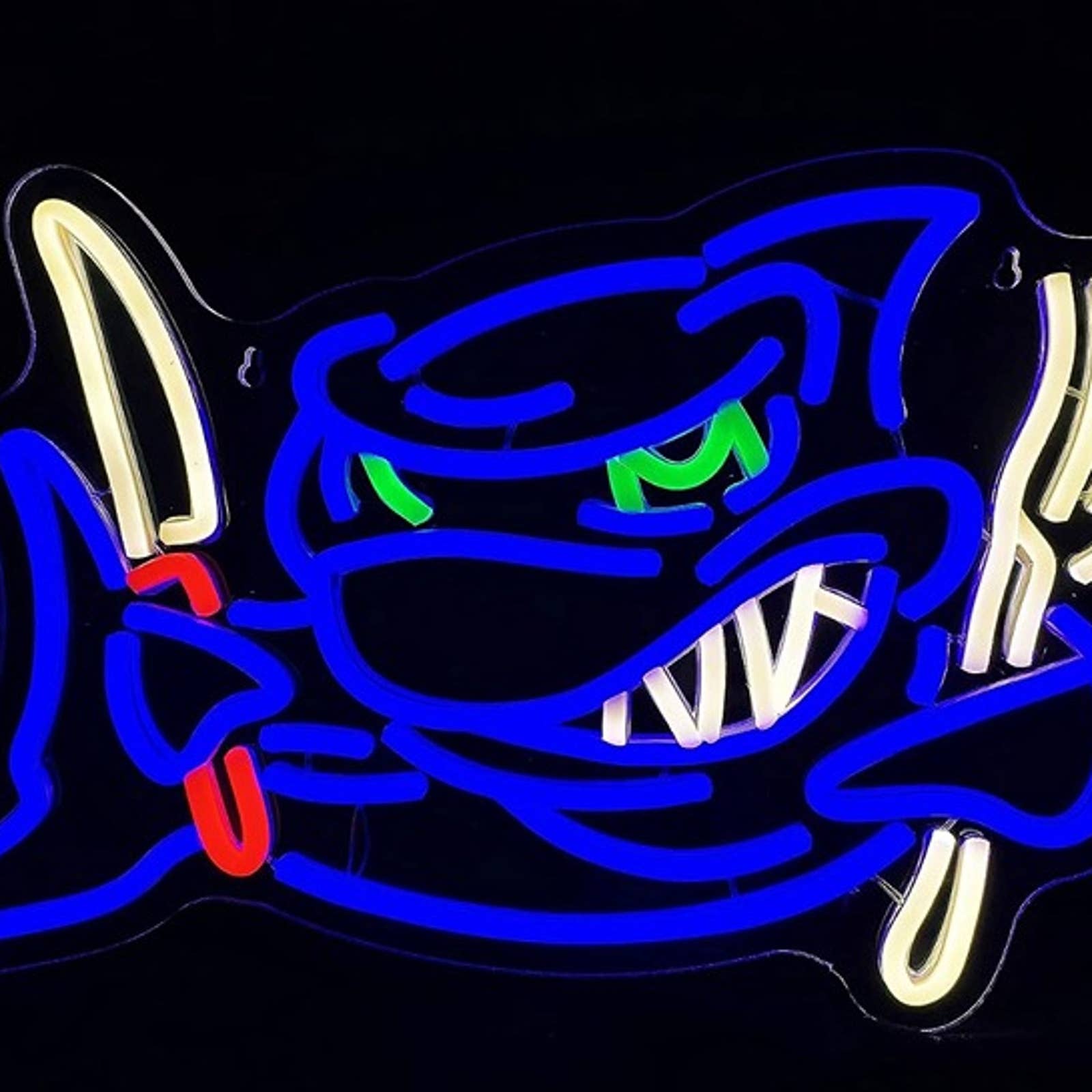 Fun Bright Blue Hungry Shark Fork & Knife LED Night Light Room Wall Decor