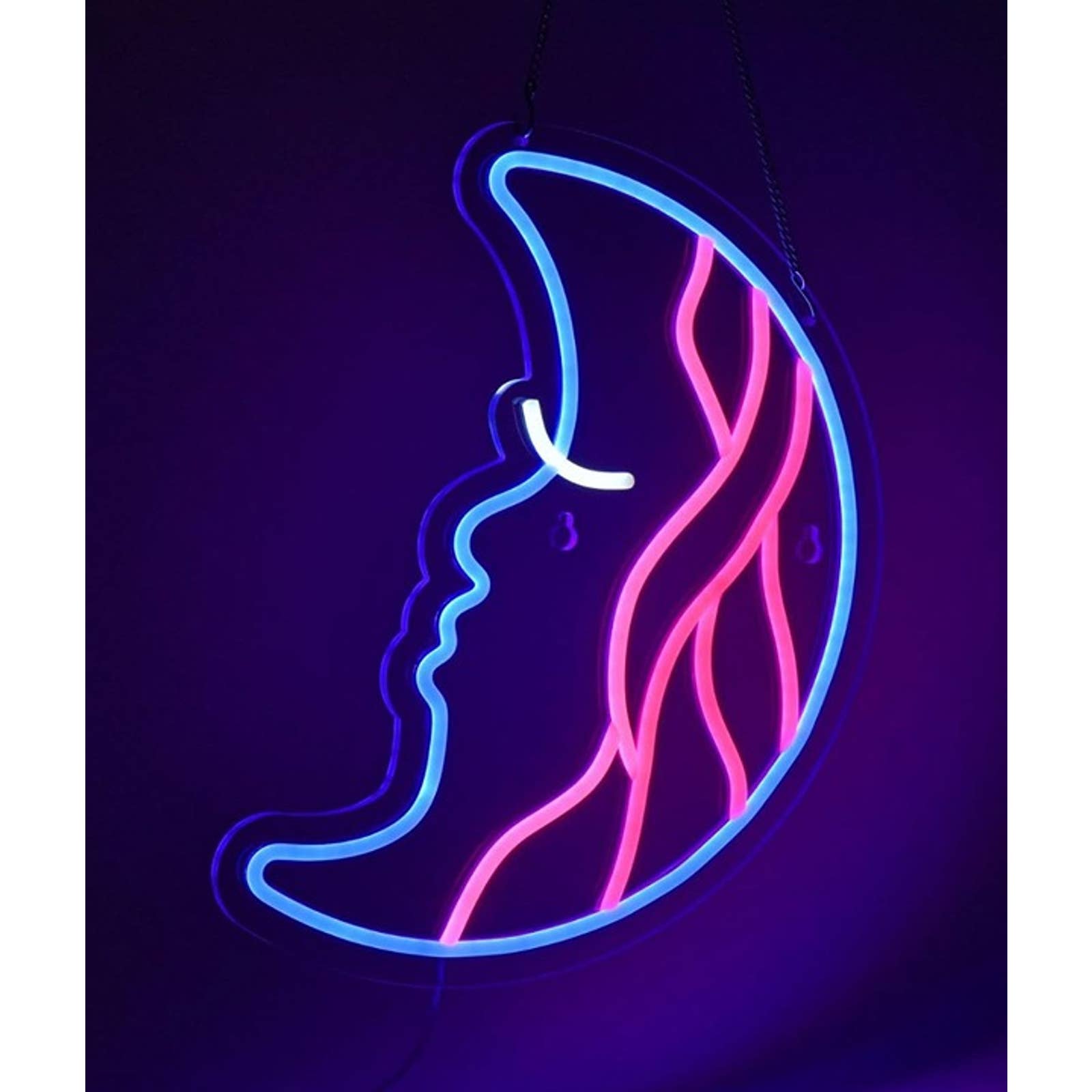 Turn your space into a whimsical wonderland with our Crescent Moon Waves LED Night Light, casting a fun and captivating blend of blue and pink hues that enhance your wall decor with a touch of celestial magic and charm!