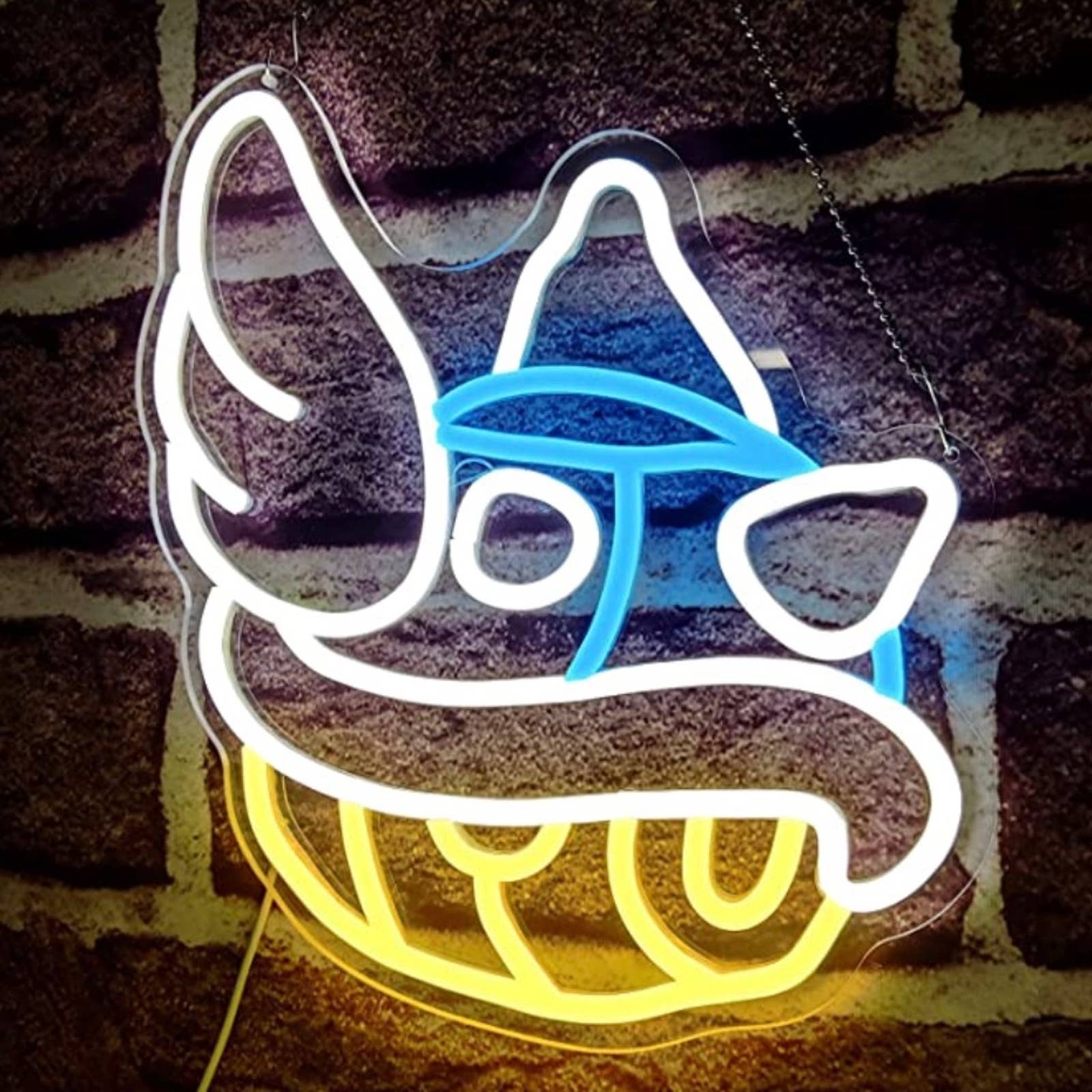 BLUE SHELL LED SIGN: The gamer neon sign for wall decor is powered by USB power supply (power cord length 70.8 inches) can be connected via laptop/power bank/USB charger. The blue shell neon gaming signs for boys room refined size and shape make LED neon light signs placement more flexible and personal. No matter where the décor is, it will fill you with joy throughout the day and send you a positive message.