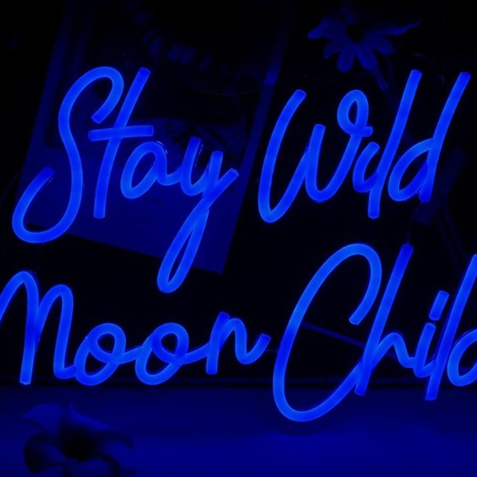 Fun Bright Blue “Stay Weird Moon Child” LED Night Light Room Wall Decoration