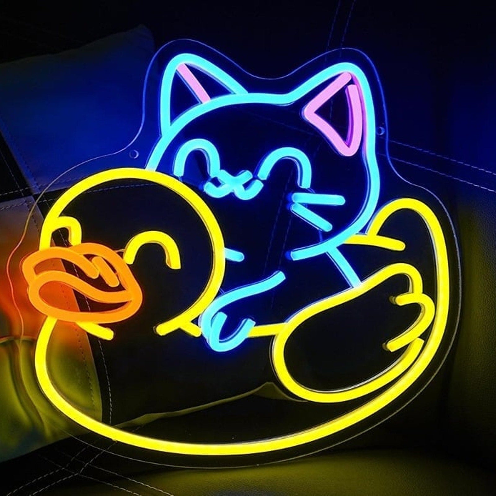 Fun Bright Cute Kitty Cat Riding a Rubber Ducky LED Night Light Room Wall Decoration