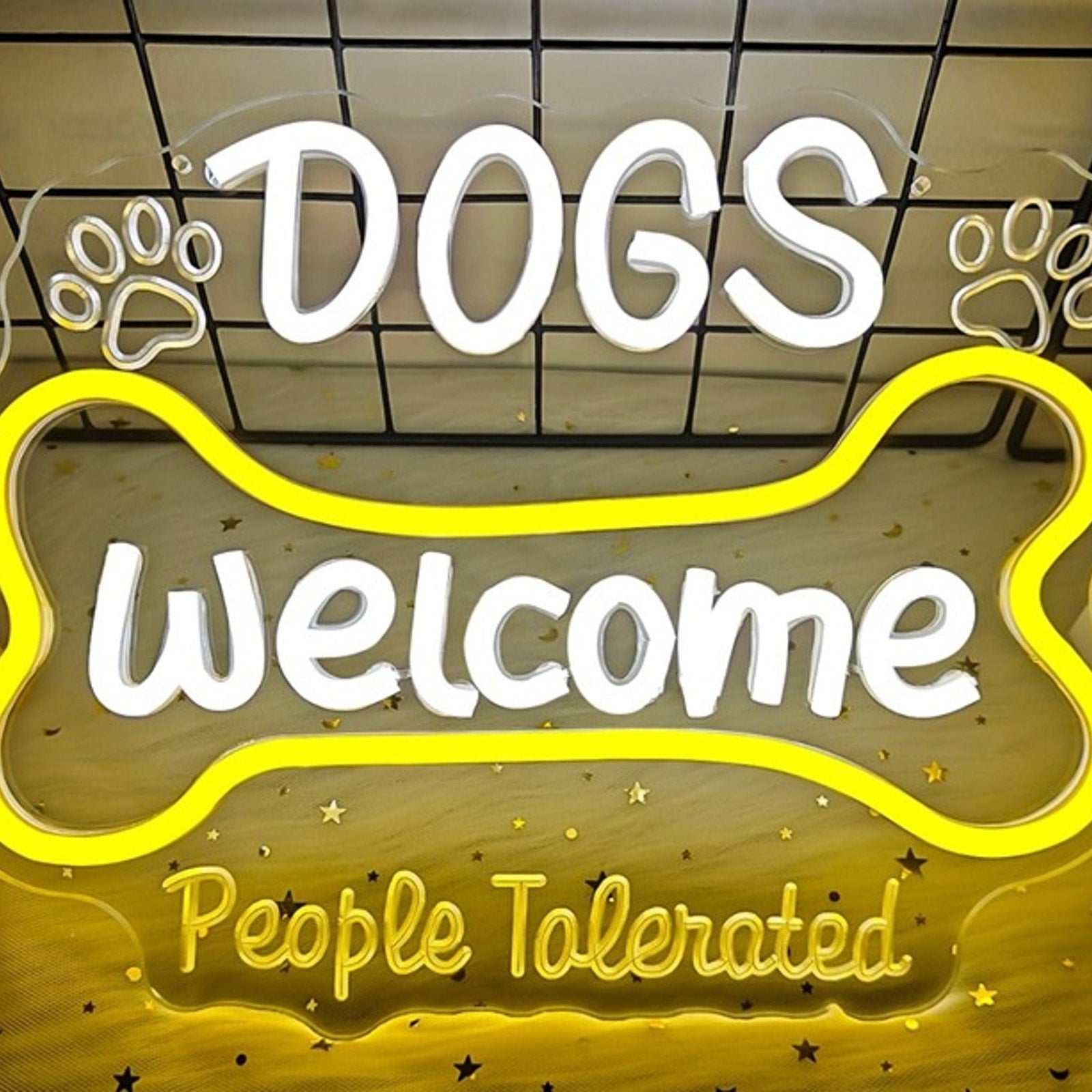 Fun Bright “Dogs Welcome, People Tolerated” LED Night Light Room Wall Decoration