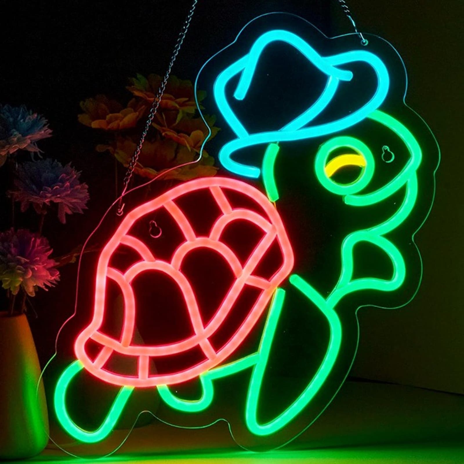 Fun Bright Green Cowboy Turtle LED Night Light Room Wall Decoration