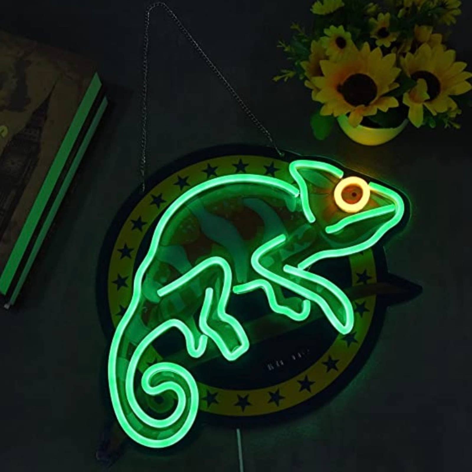Fun Bright Green Iguana Lizard Hanging LED Night Light Room Wall Decoration