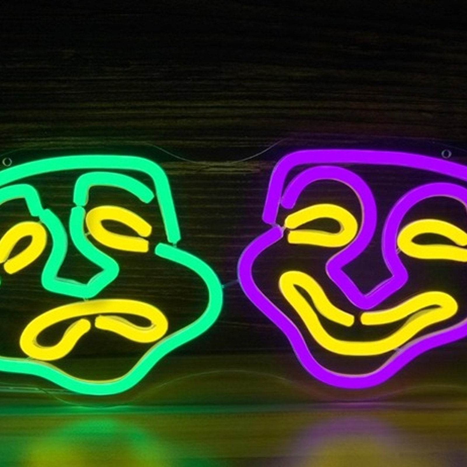 Fun Bright Green / Purple Theater Mask LED Night Light Room Wall Decor