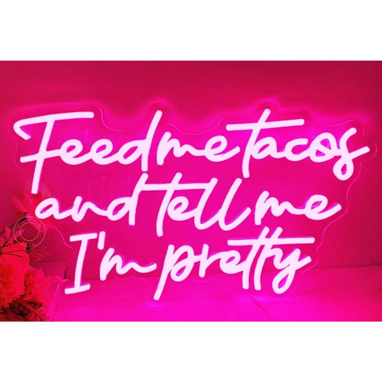 Fun Bright Pink “Feed Me Tacos & Tell Me I’m Pretty” LED Night Light Decor