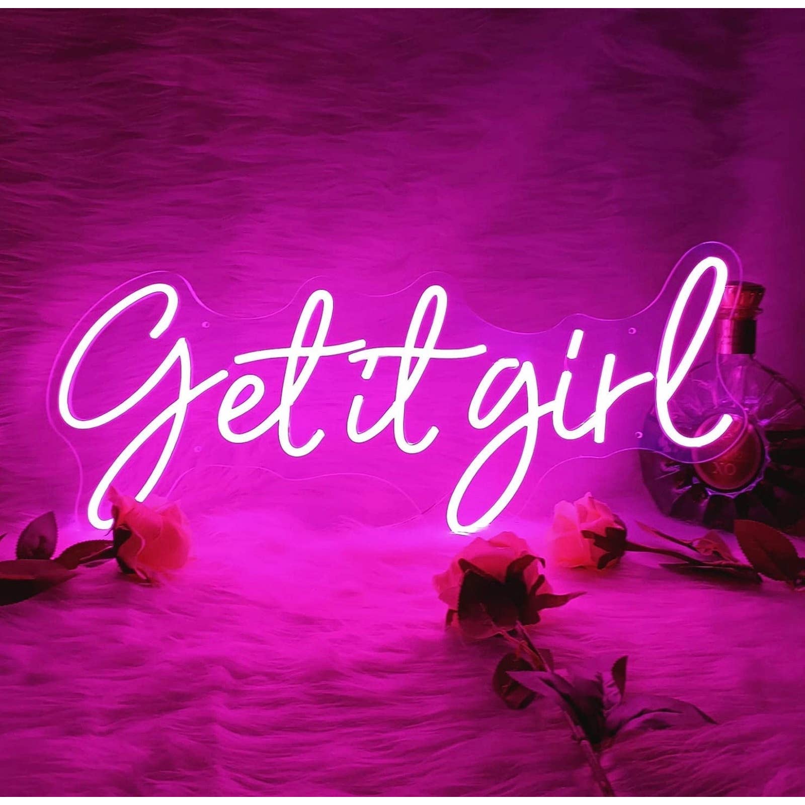 Fun Bright Pink “Get It Girl” LED Night Light Room Wall Decoration
