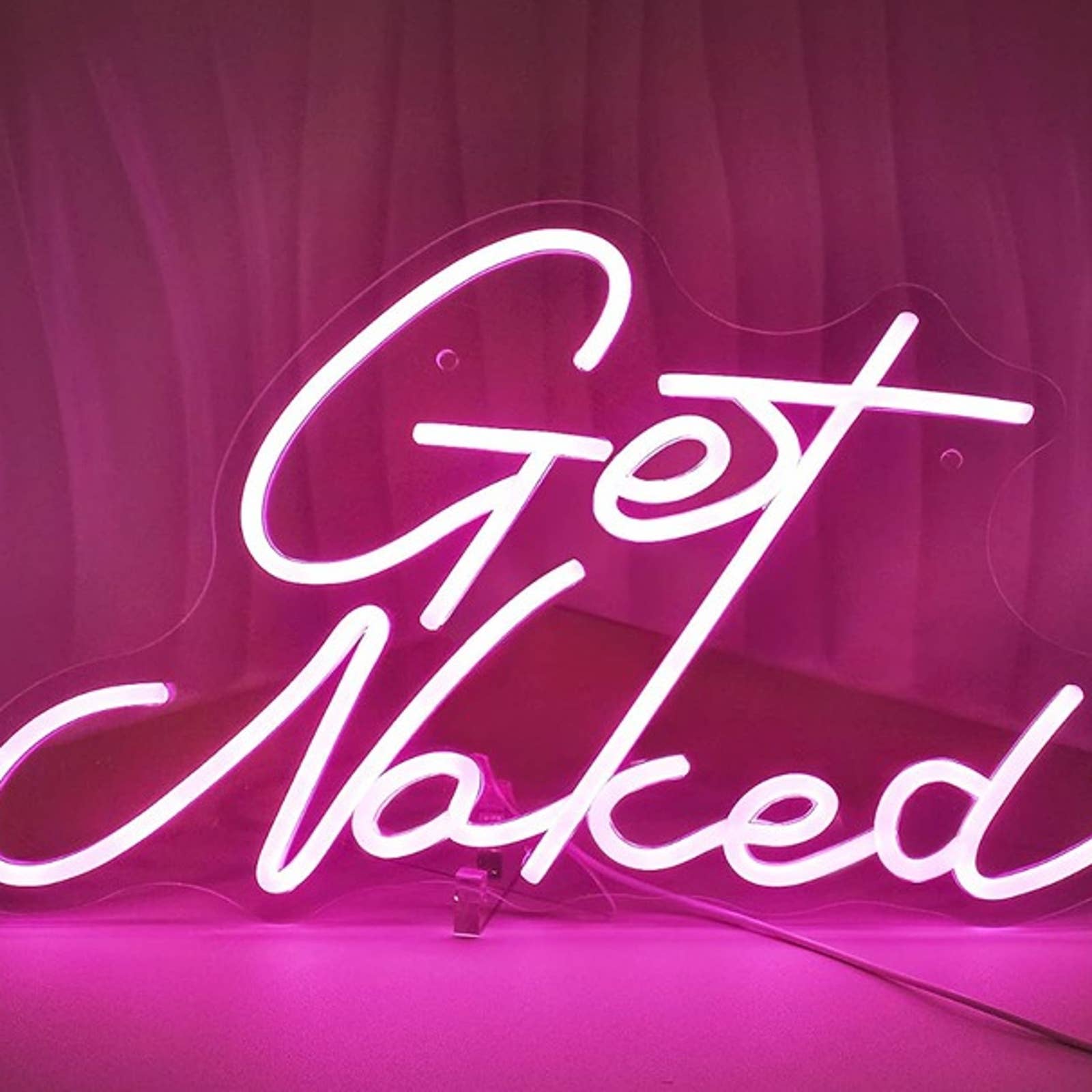 The **Fun Bright Pink "Get Naked" LED Night Light** adds a playful and cheeky touch to your room decor. With its bold and humorous message, it's sure to be a conversation starter and bring a smile to your face.