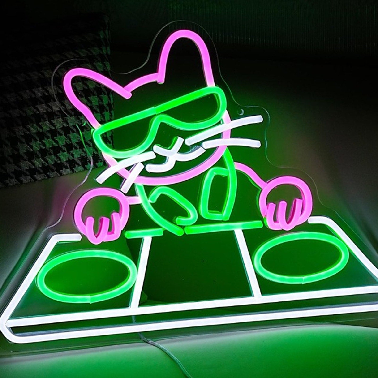 Fun Bright Pink Kitty Cat DJ LED Night Light Music Concert Room Wall Decoration