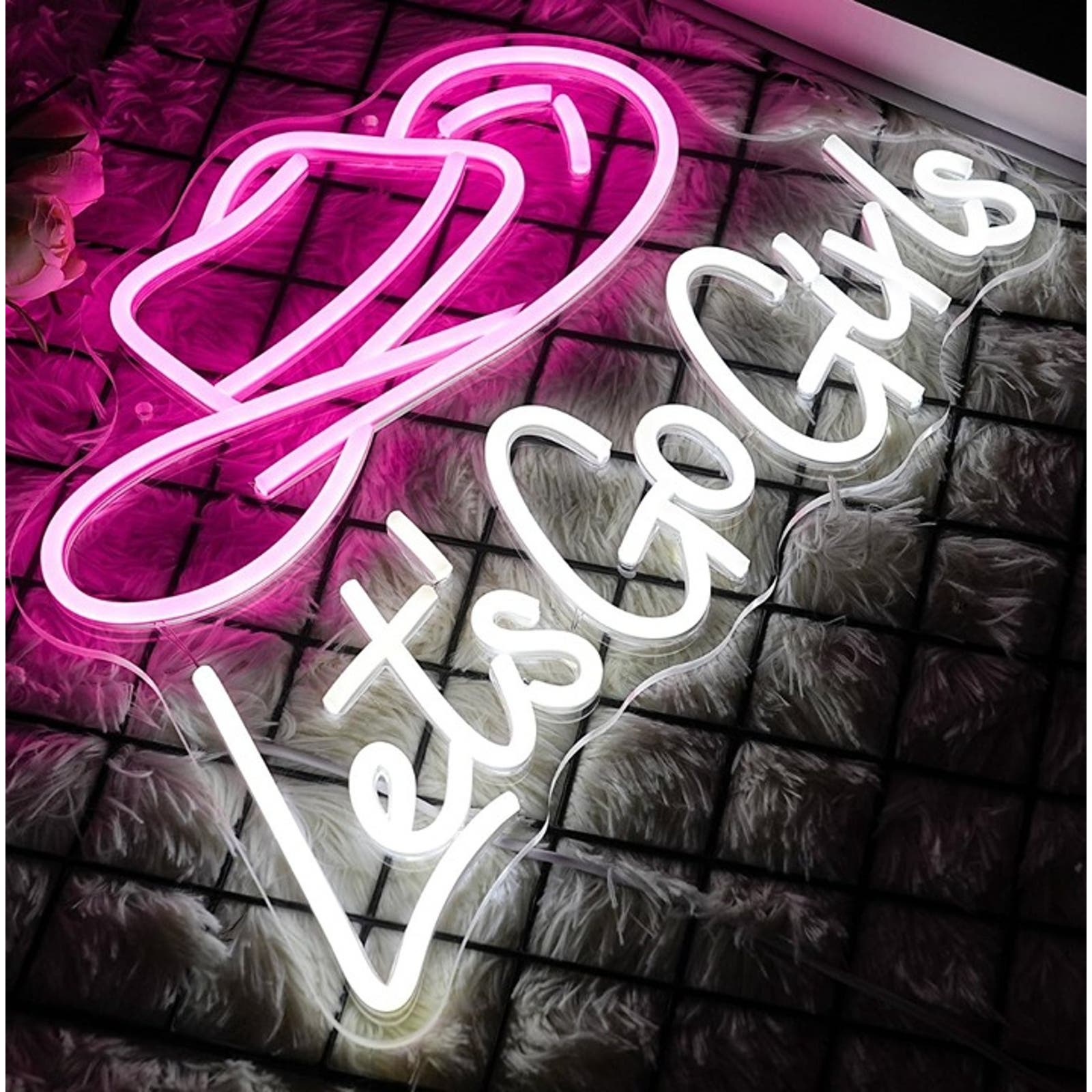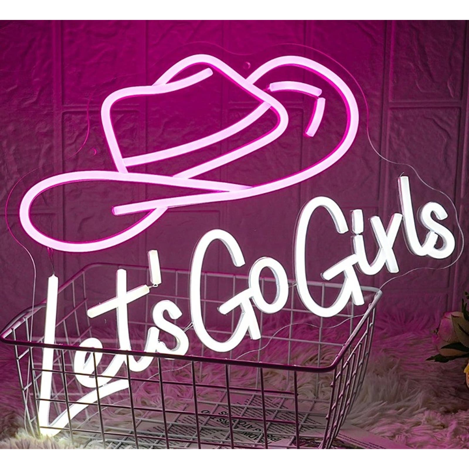 Embrace the spirit of adventure with the "Let's Go Girls" Cowgirl Hat LED Night Light! Perfect for adding a fun and playful vibe to your room, this bright pink light featuring a cowgirl hat is a delightful decoration for those who love a touch of wild western charm.