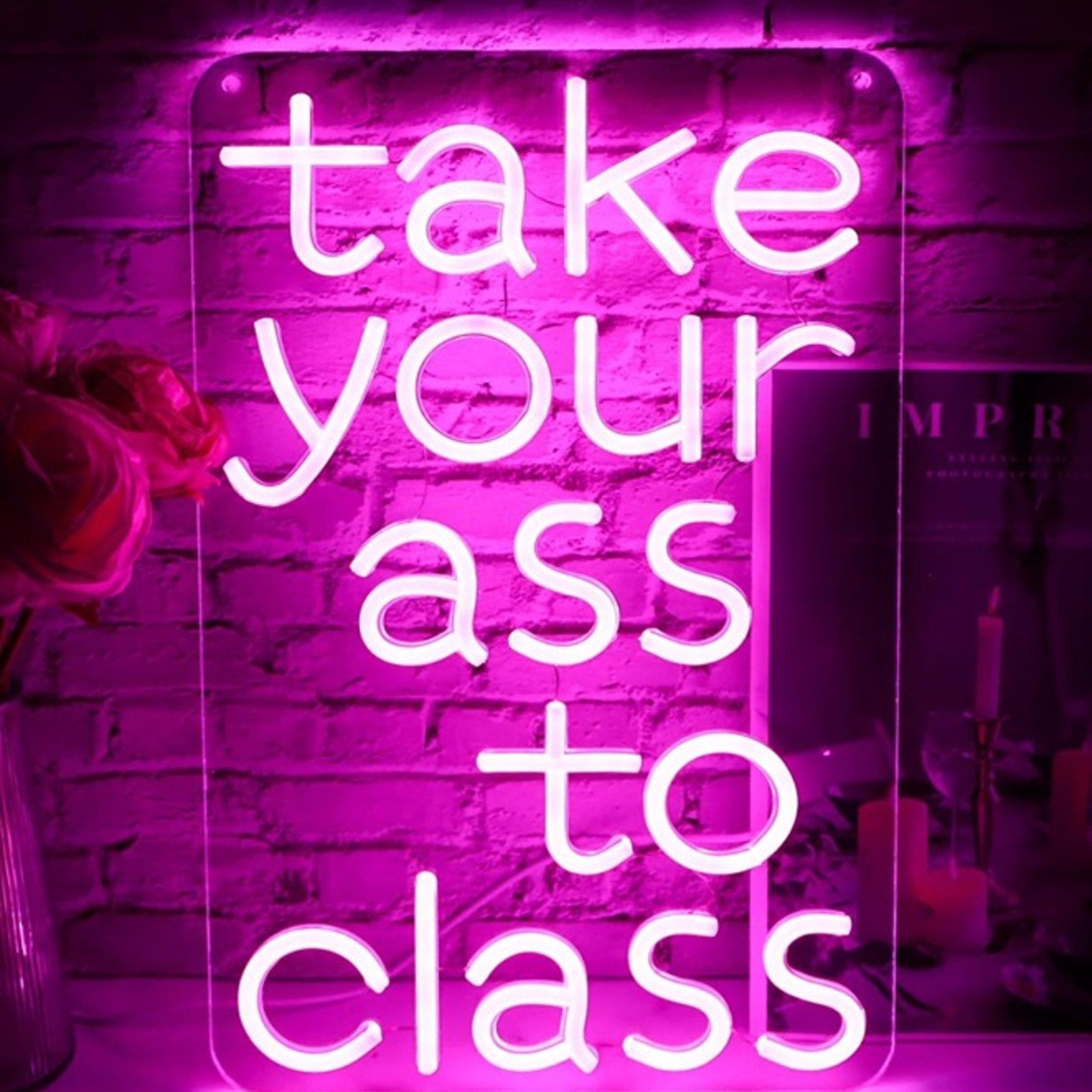 Fun Bright Pink “Take Your Butt to Class” LED Night Light Room Wall Decoration