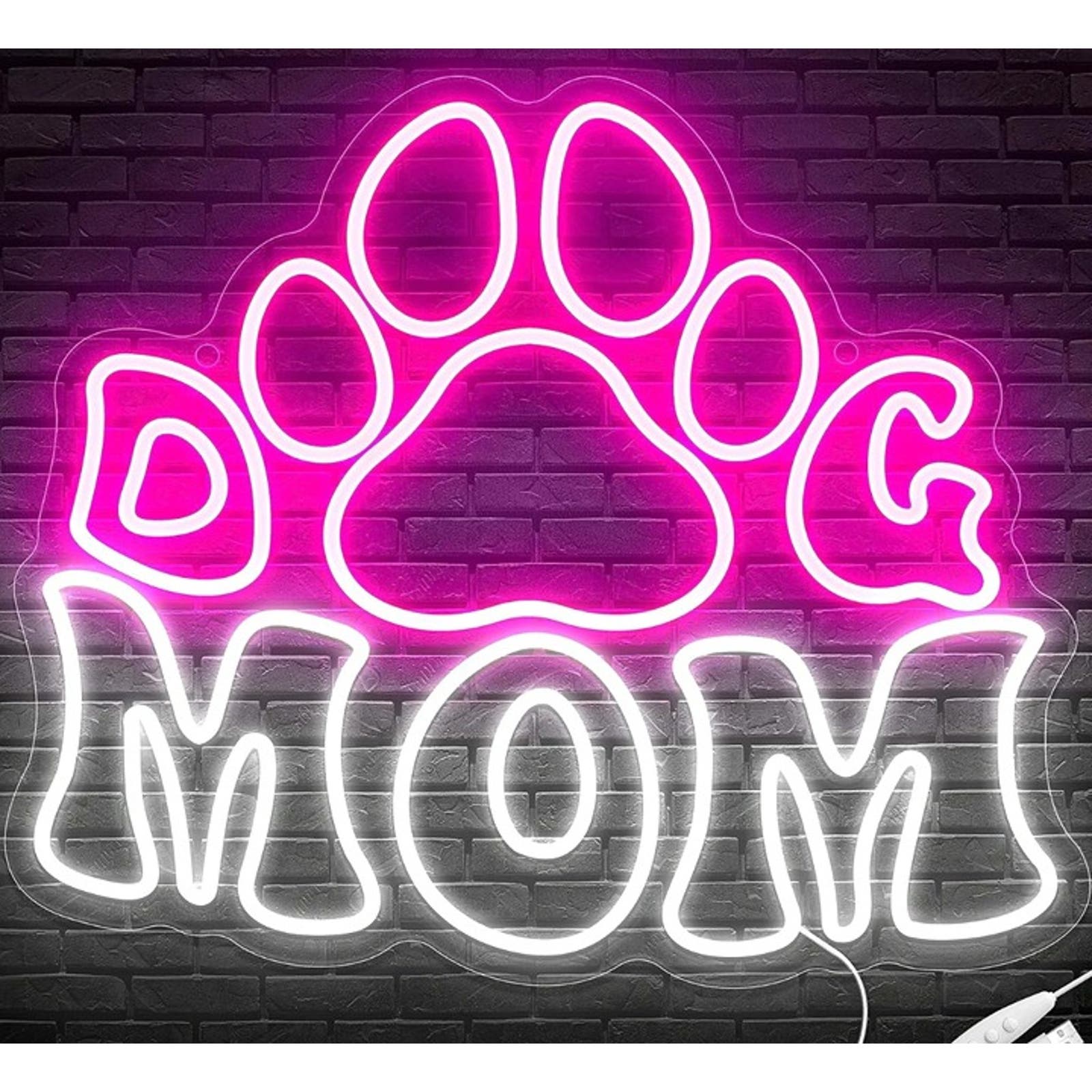 Fun Bright Pink/White Dog Mom Paw LED Night Light Room Wall Decoration
