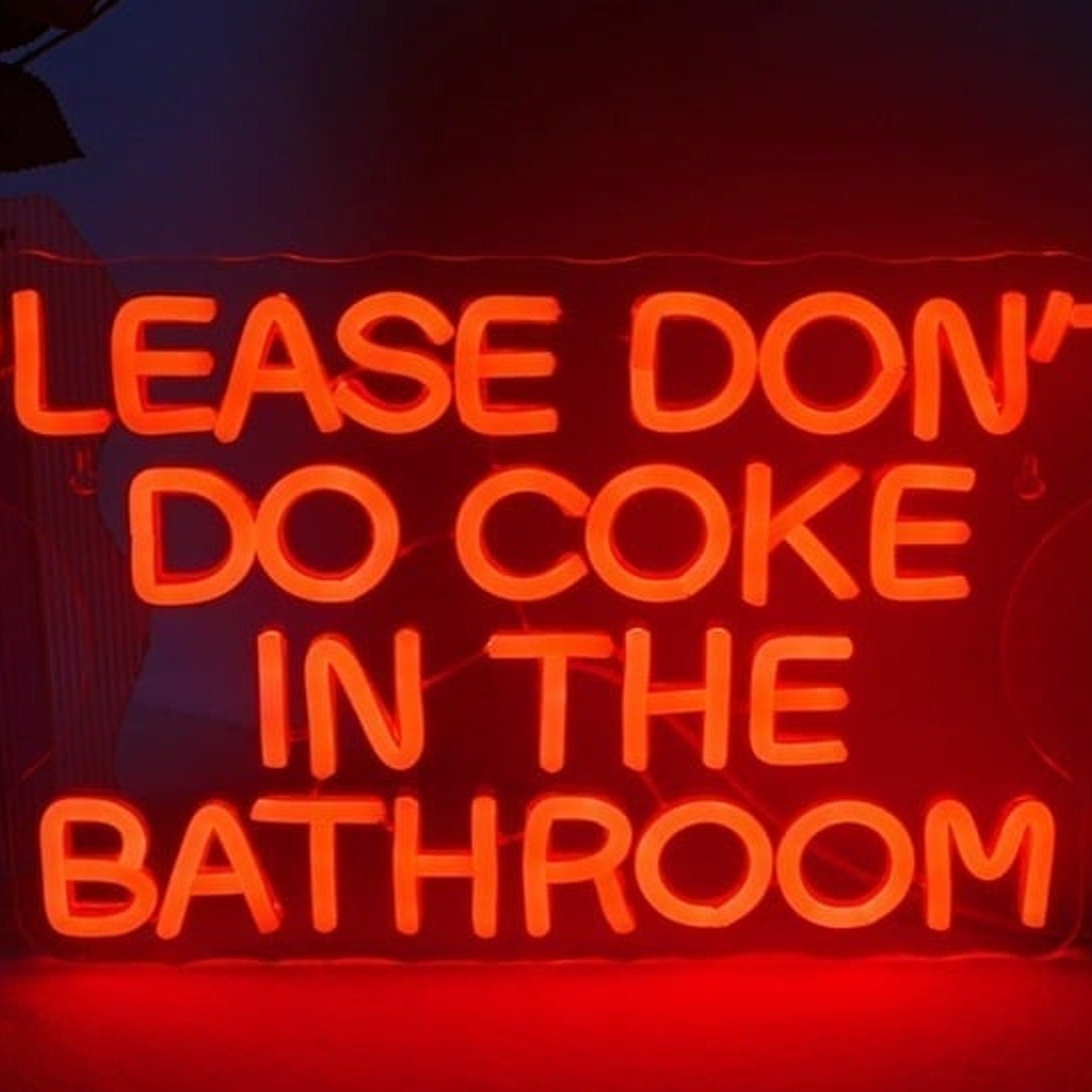 Fun Bright Red “Please Don’t Do Coke In The Bathroom” LED Light Room Wall Decor