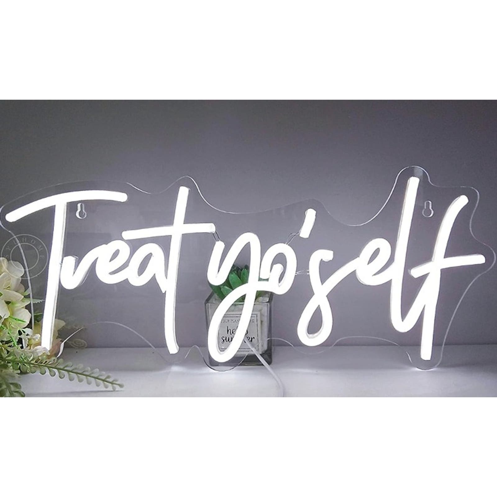 Elegance Unleashed: Unique White 'Treat Yo' Self' LED Light for Chic Wall Decor!
