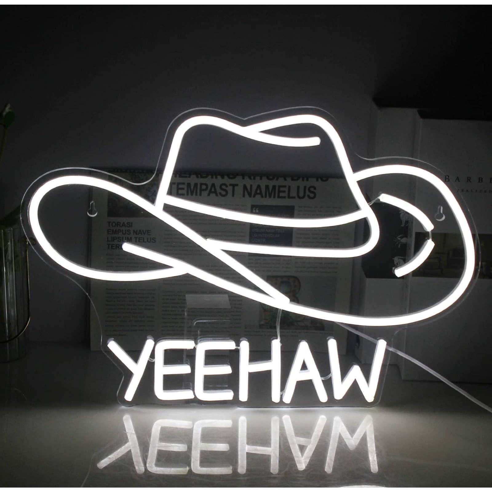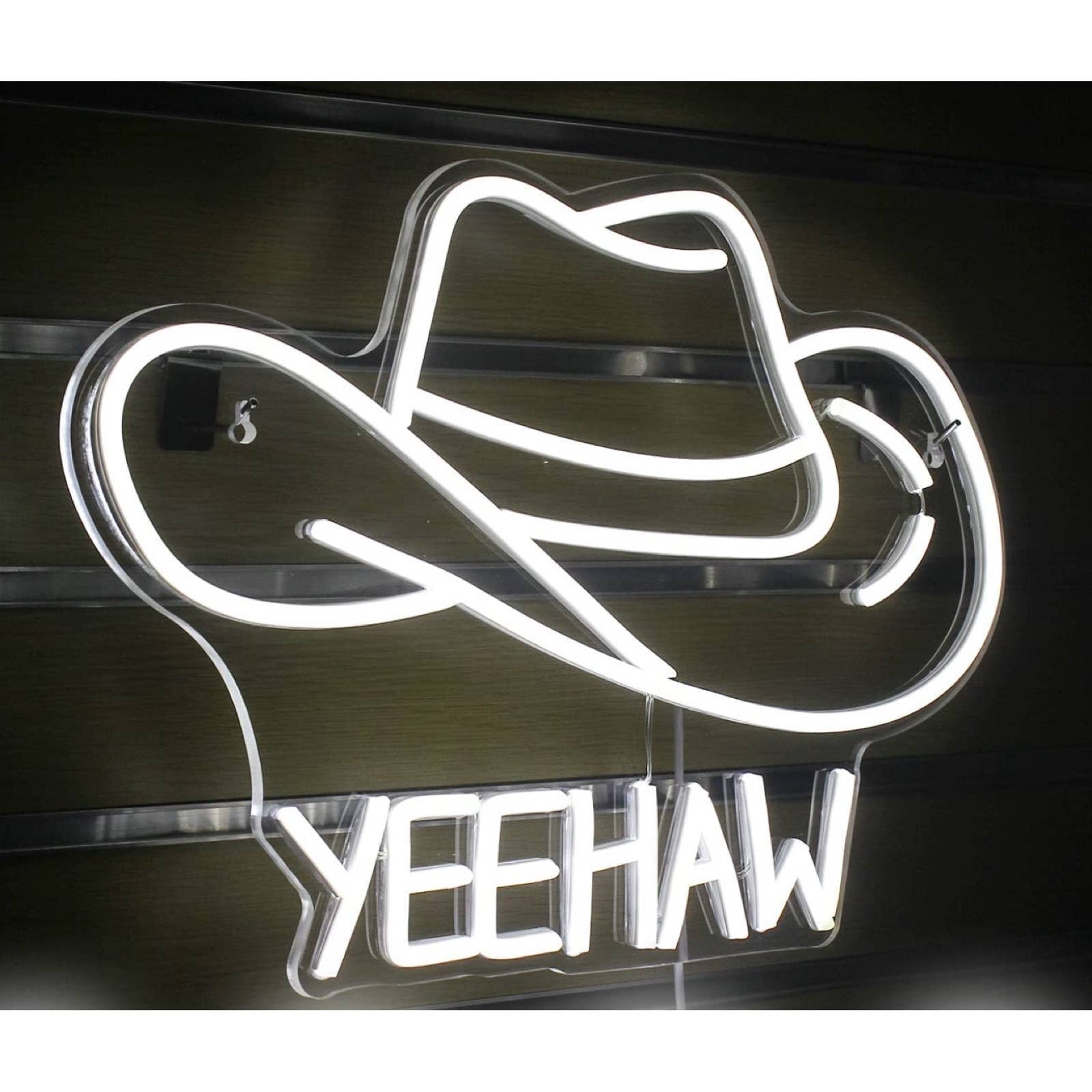 Fun Bright White Yeehaw Cowboy Hat LED Night Light Room Wall Decoration