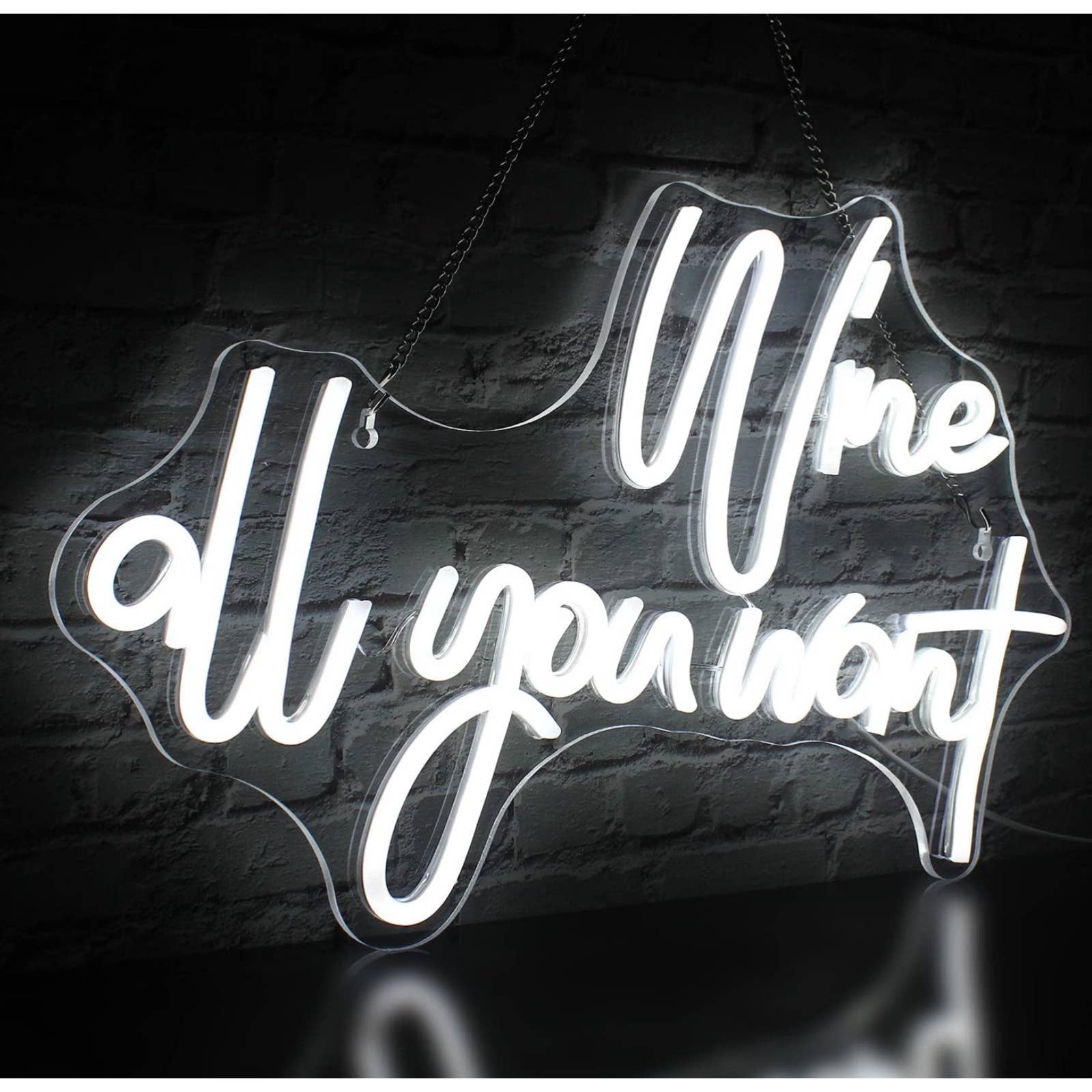 Unique design: Wine all you want letter neon lights emit bright light, adding fun and magical color atmosphere to your room. You can use it as a birthday, engagement, bachelorette party decoration.