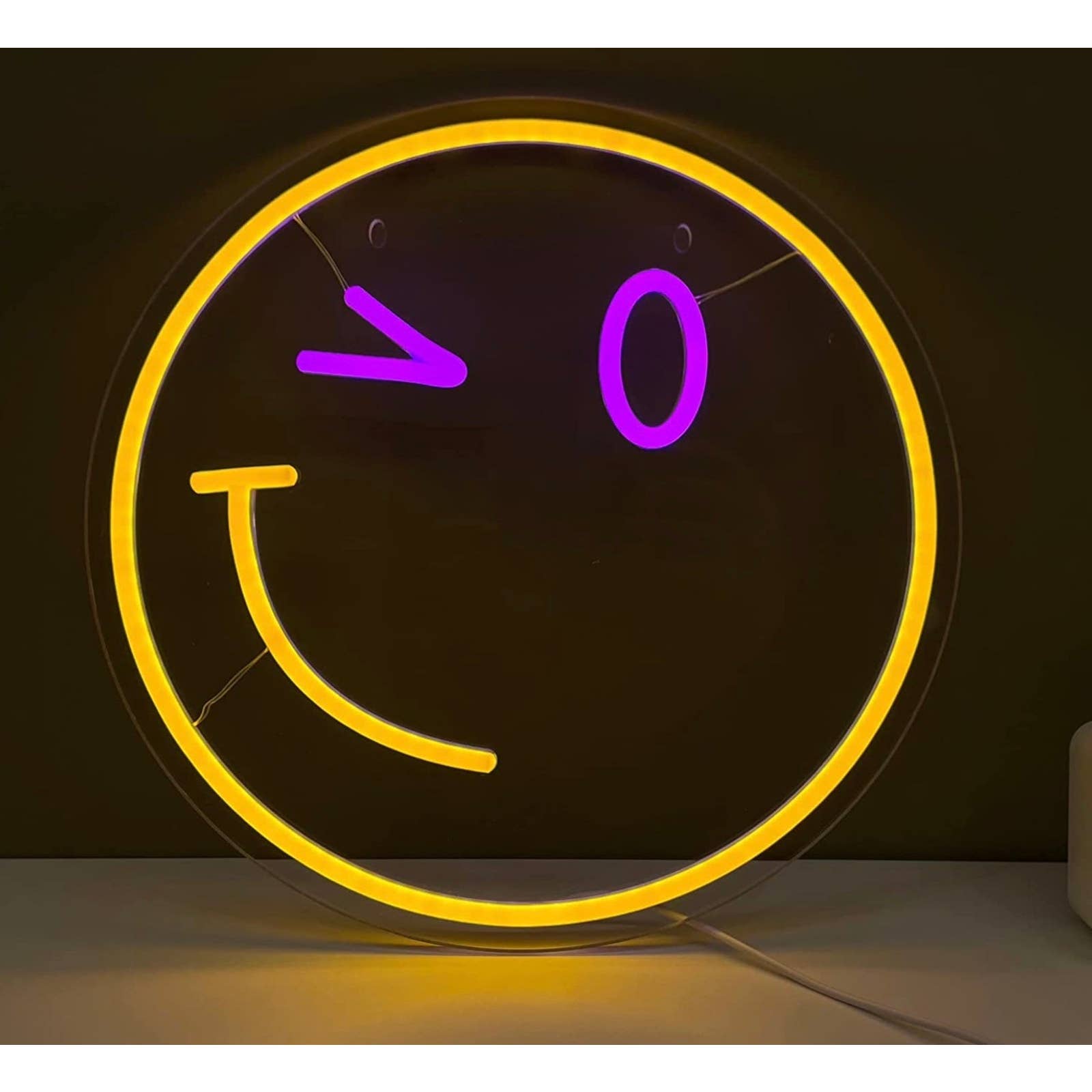 High Quality Neon Sign Lights: Neon smiley face sign is made of strong and highly transparent acrylic backboard and anti-fall PVC materials. Smiley face neon light decor is safer and brighter than traditional glass neon lights. The color will not darken after long-term use, and there will be no flicker.