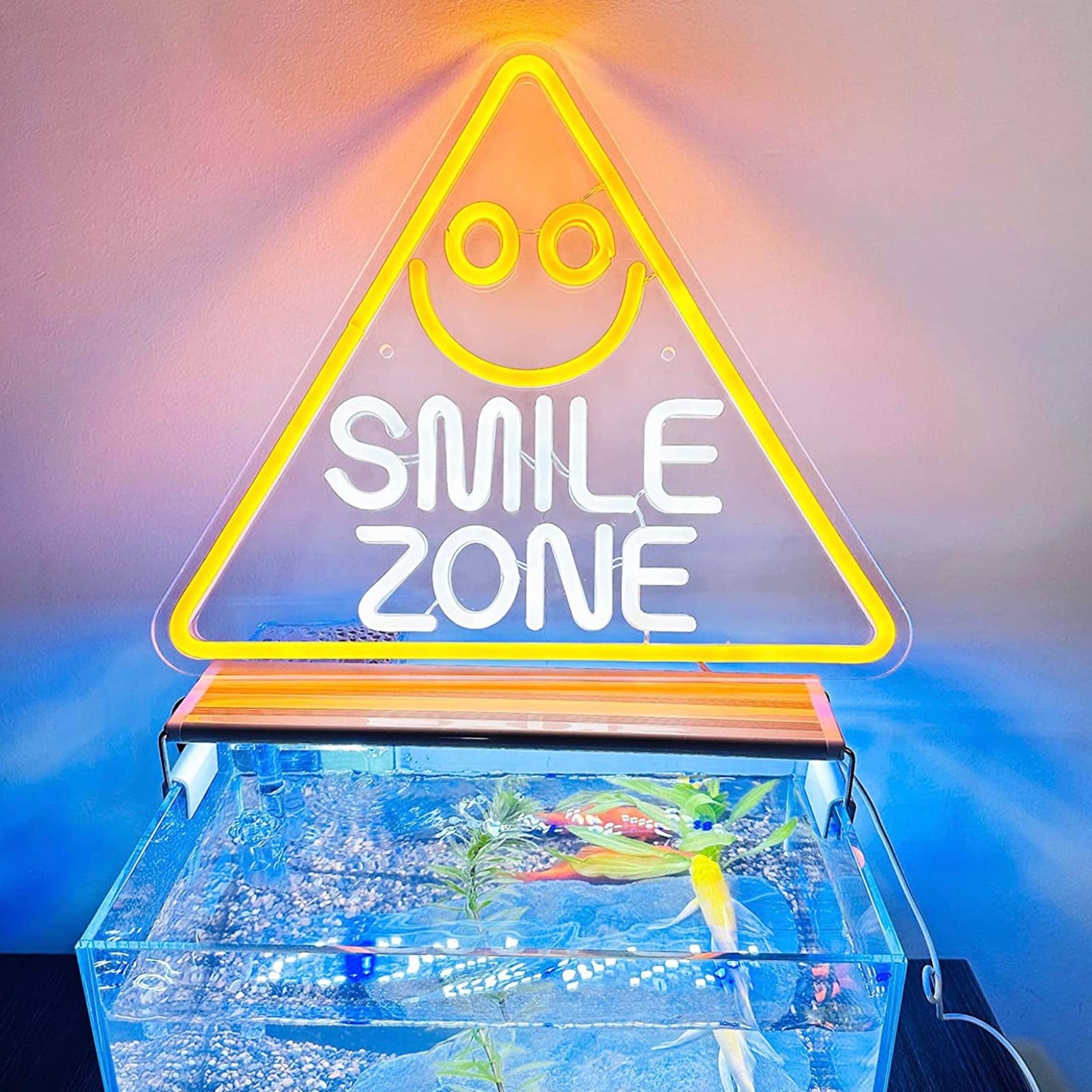 SPECIAL NEON SHAPE: Have you ever seen a neon sign like a traffic sign? The smile sign design is different. It is a combination of a yellow smiley face and a triangle frame, with cool white text smile zone, always reminding you: "Now You have entered the smile zone!"