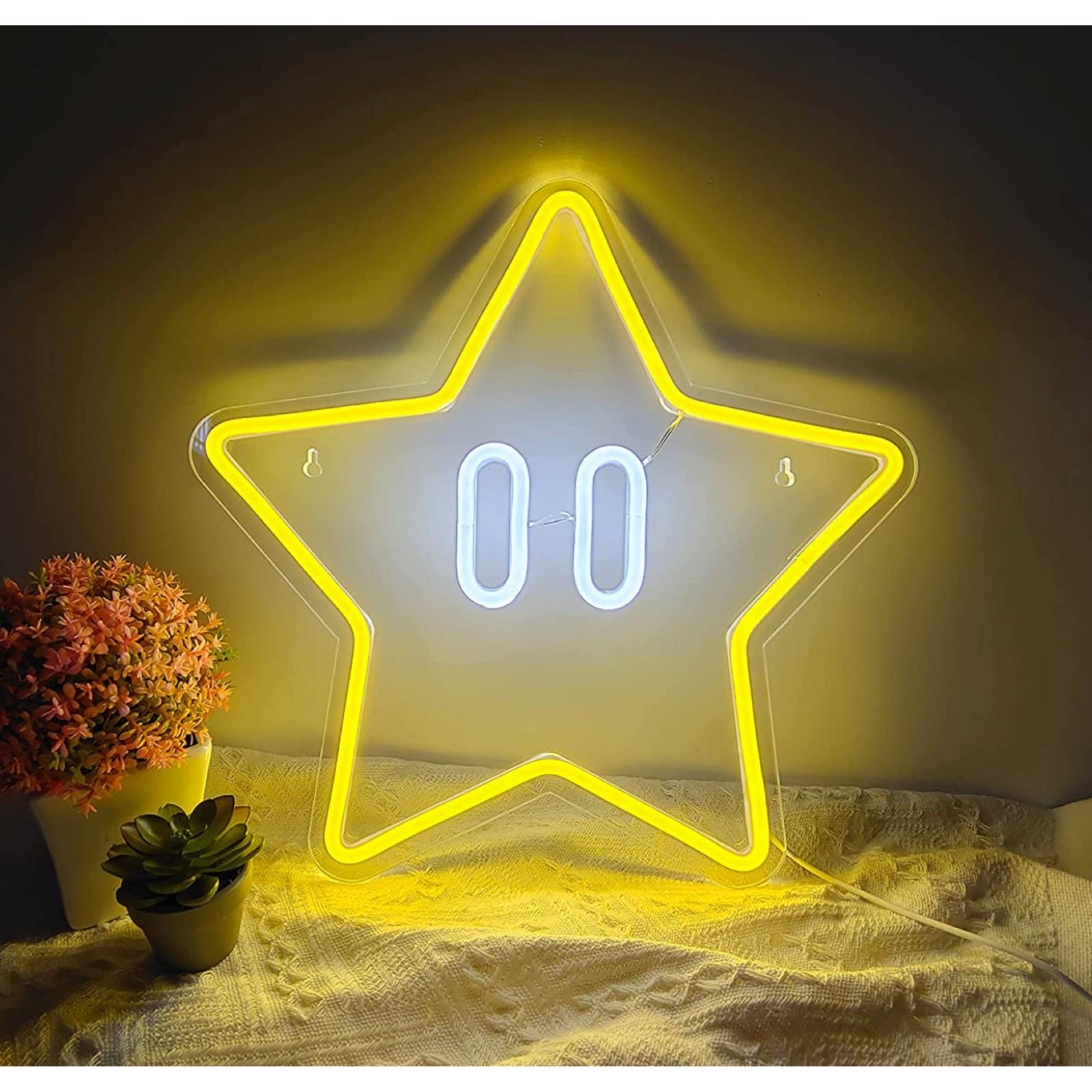 CUTE STAR LED SIGN: Light up your home with fun-loving vibes when you turn on this modern star-shaped neon sign. Use on a table, or bookcase, or hang on your wall to add a little extra pizzazz to any room in your home kids' room, game room, or jazz up your workstation at the office.